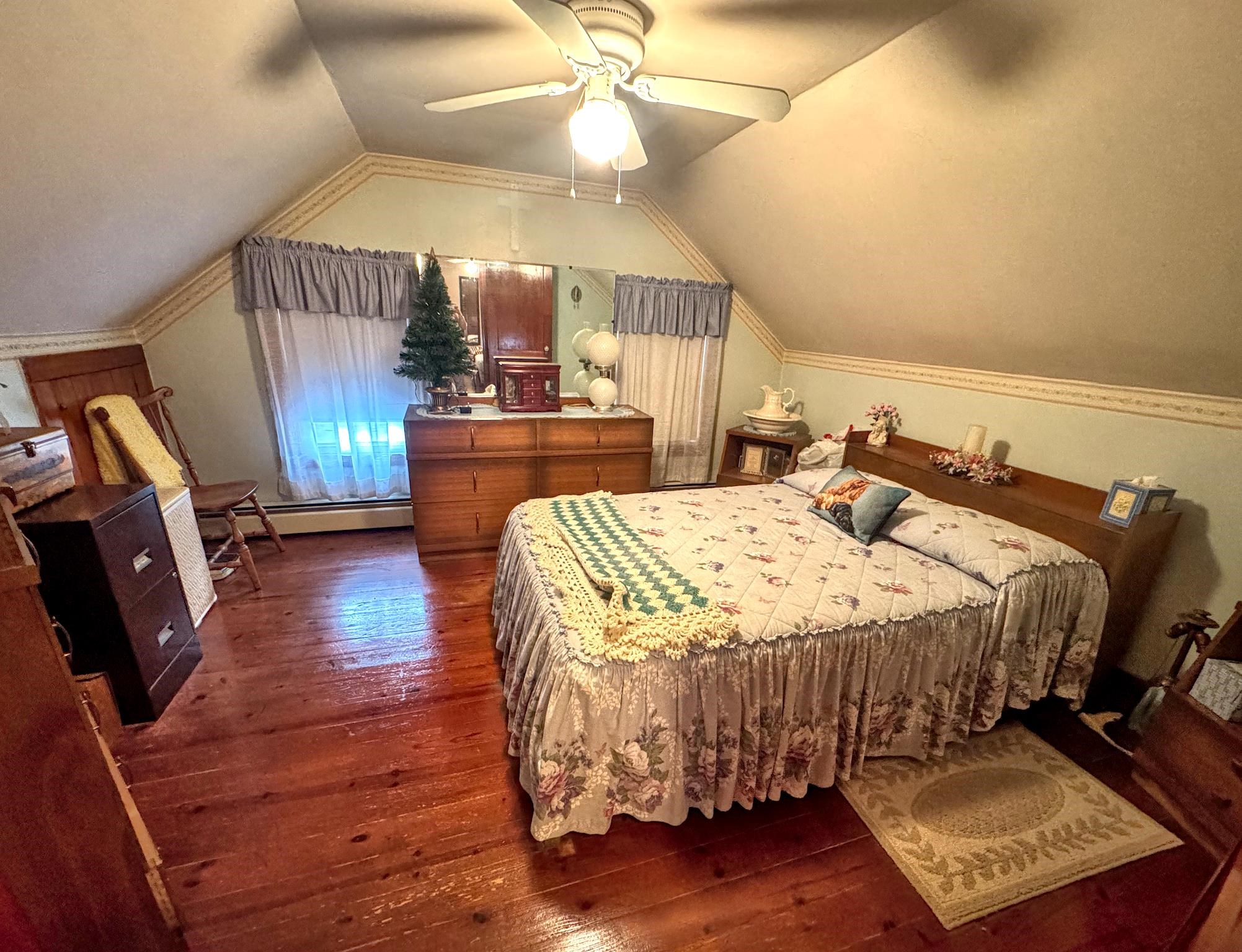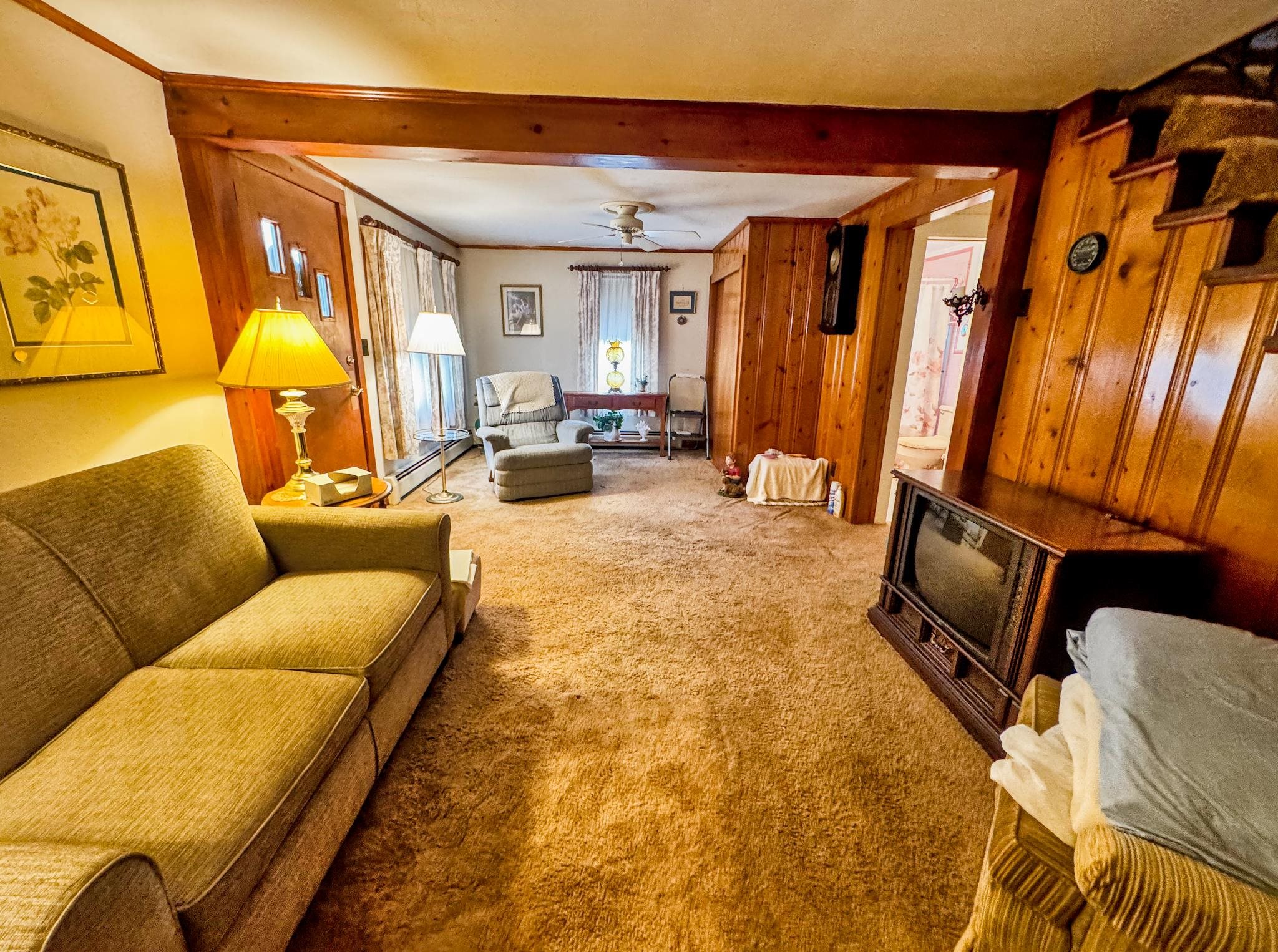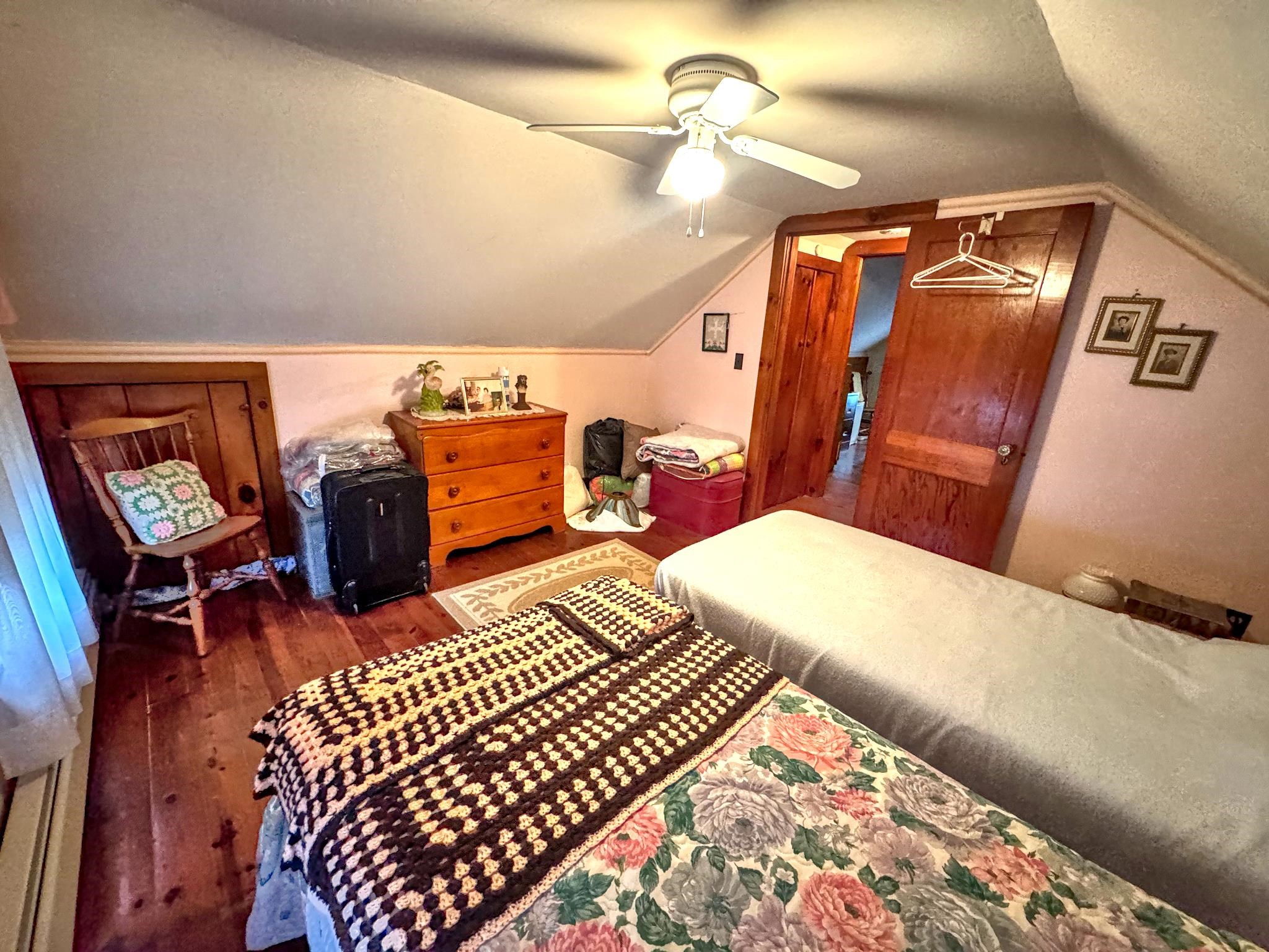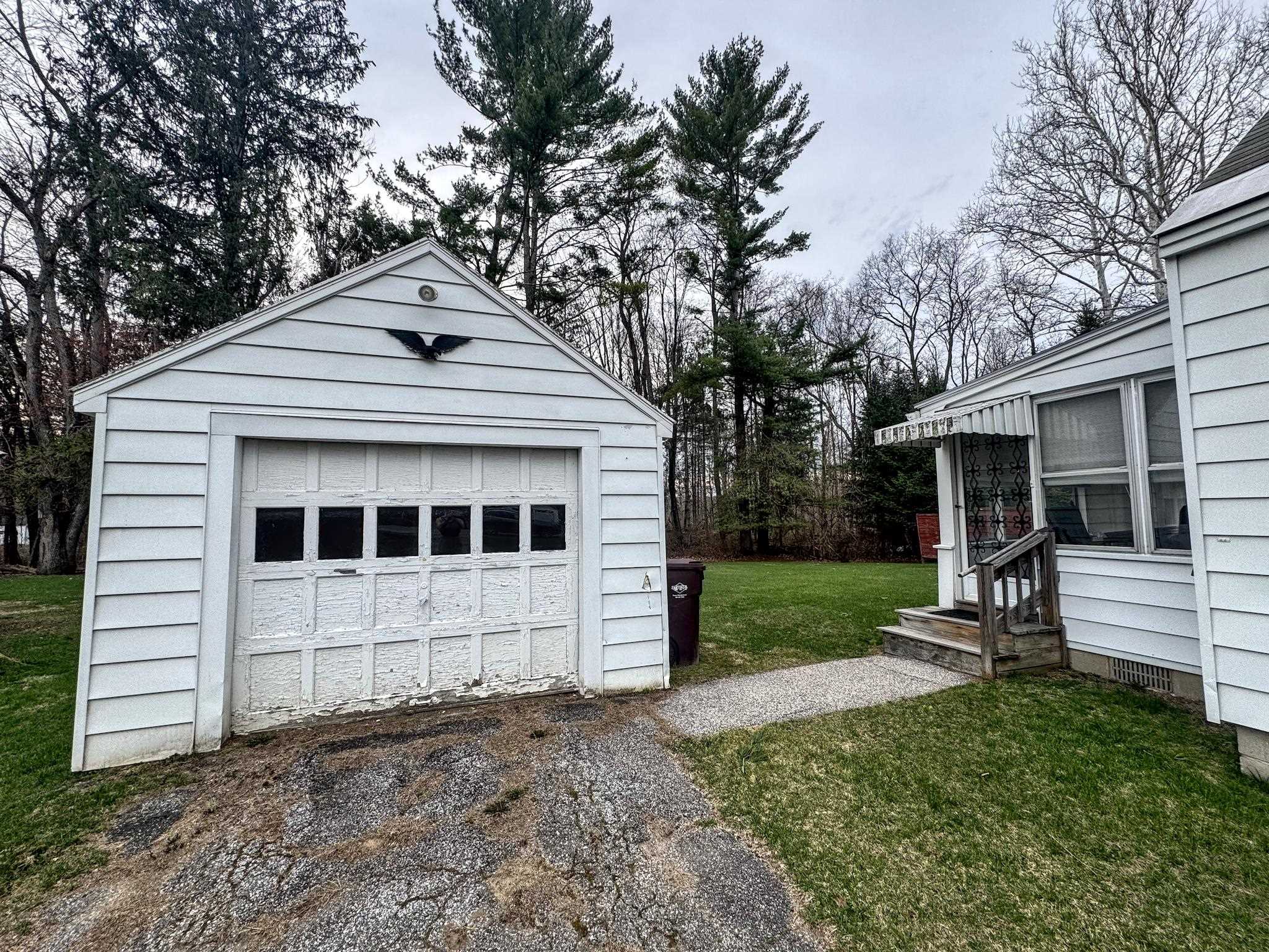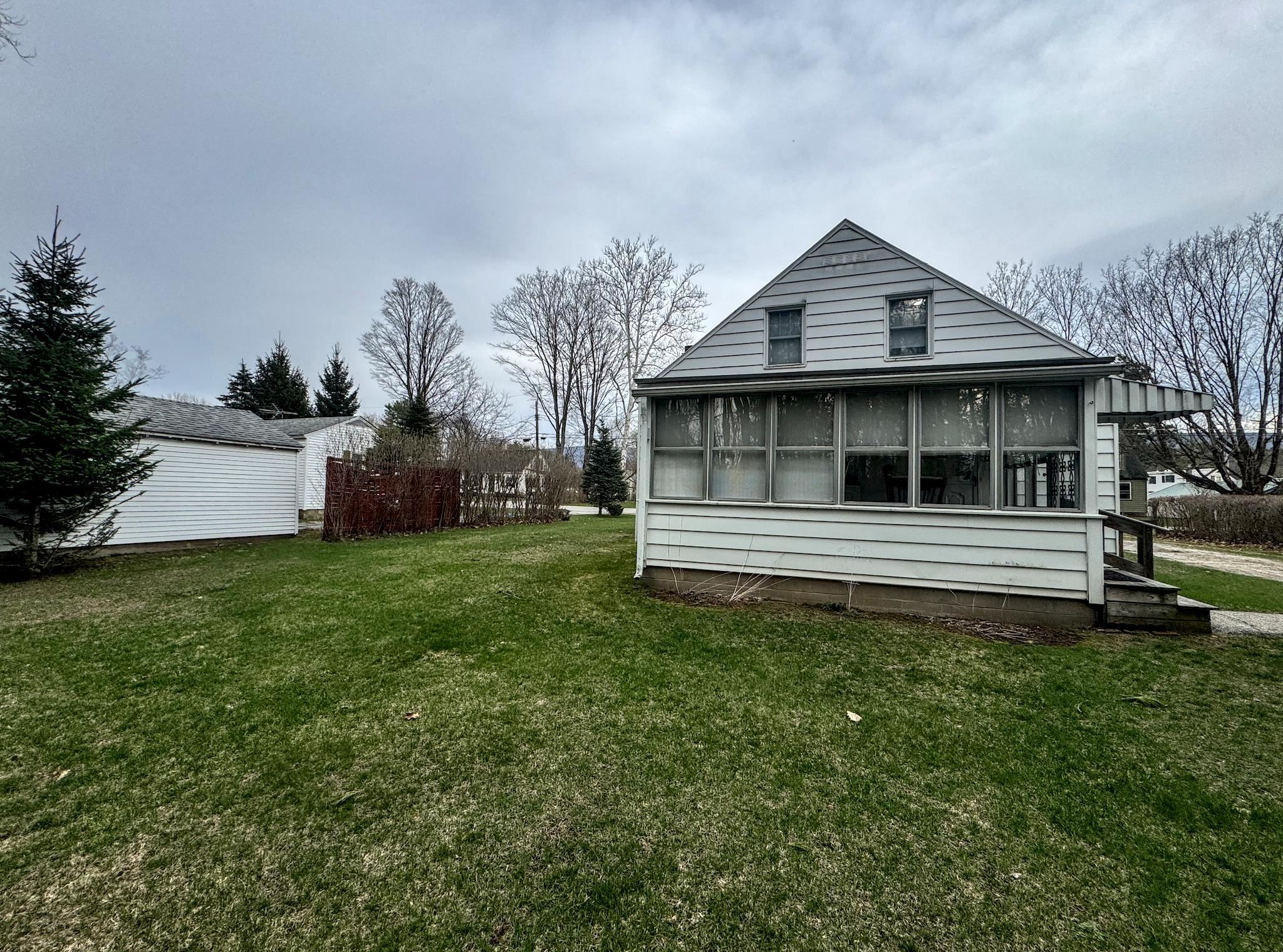 Cute as a button! Located on a dead-end street in a desirable neighborhood in the village of Shaftsbury. This sweet two bedroom home sits on a nice sized lot with some backyard privacy and a beautiful view of the woods. The deep garage has plenty of room for your car and extra storage space in the back. Step into the three season porch where you can enjoy the outdoors without the bugs! The kitchen has an opening to the formal dining room - perfect for entertaining. The spacious living room stretches the length of the house with a large closet, built-ins, and a cozy hearth featuring a wood burning stove. A tiled full bathroom with tub rounds out the first floor. Upstairs are two nice sized bedrooms with gorgeous wood floors. Precious details like glass knobs are classic and elegant. Easy maintenance, vintage charm, and a great location. What's not to love?