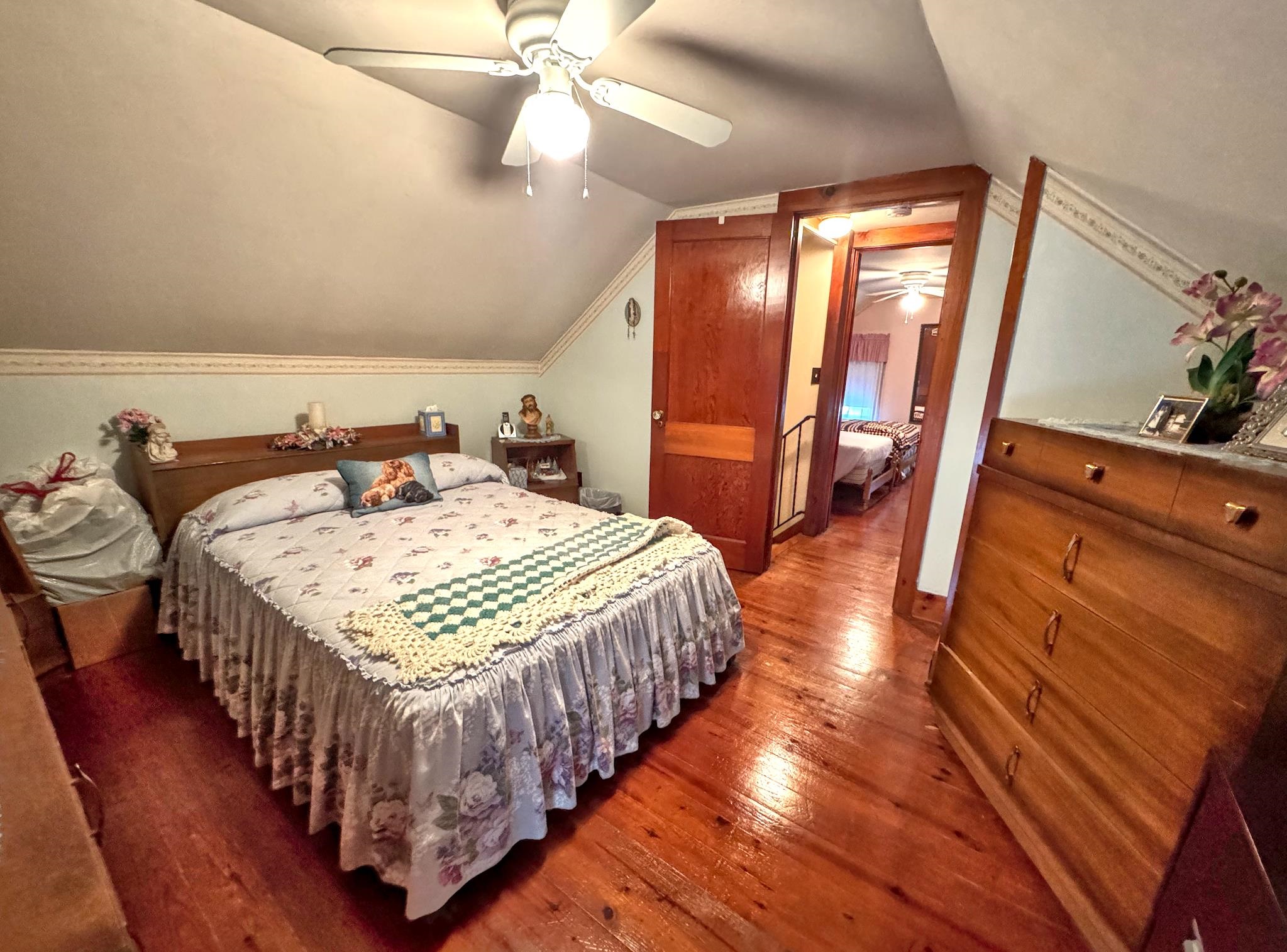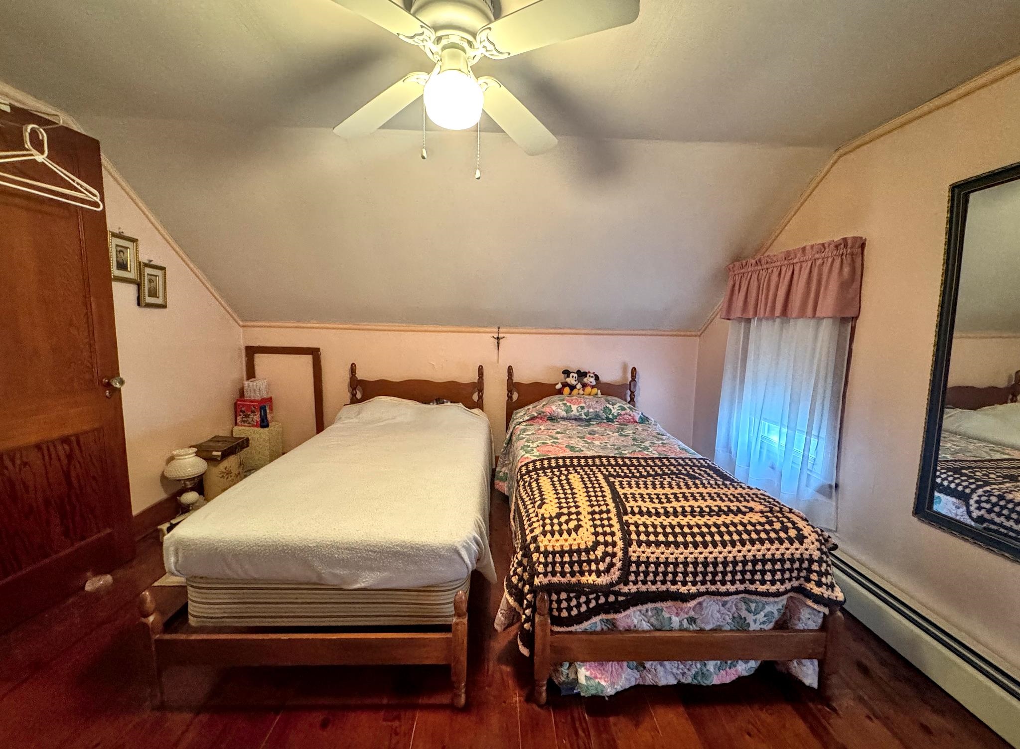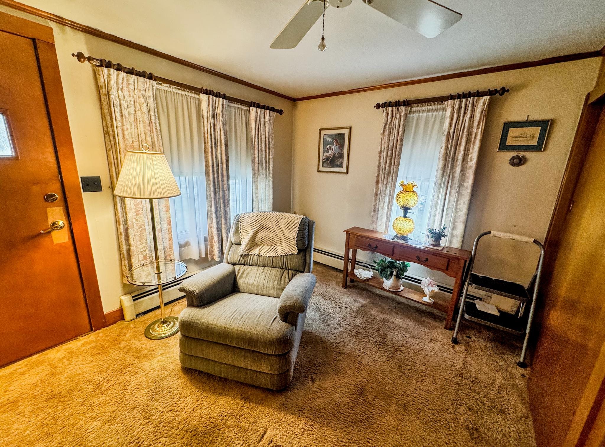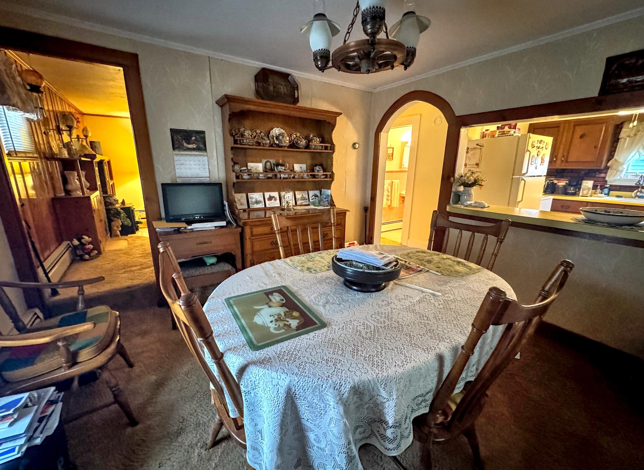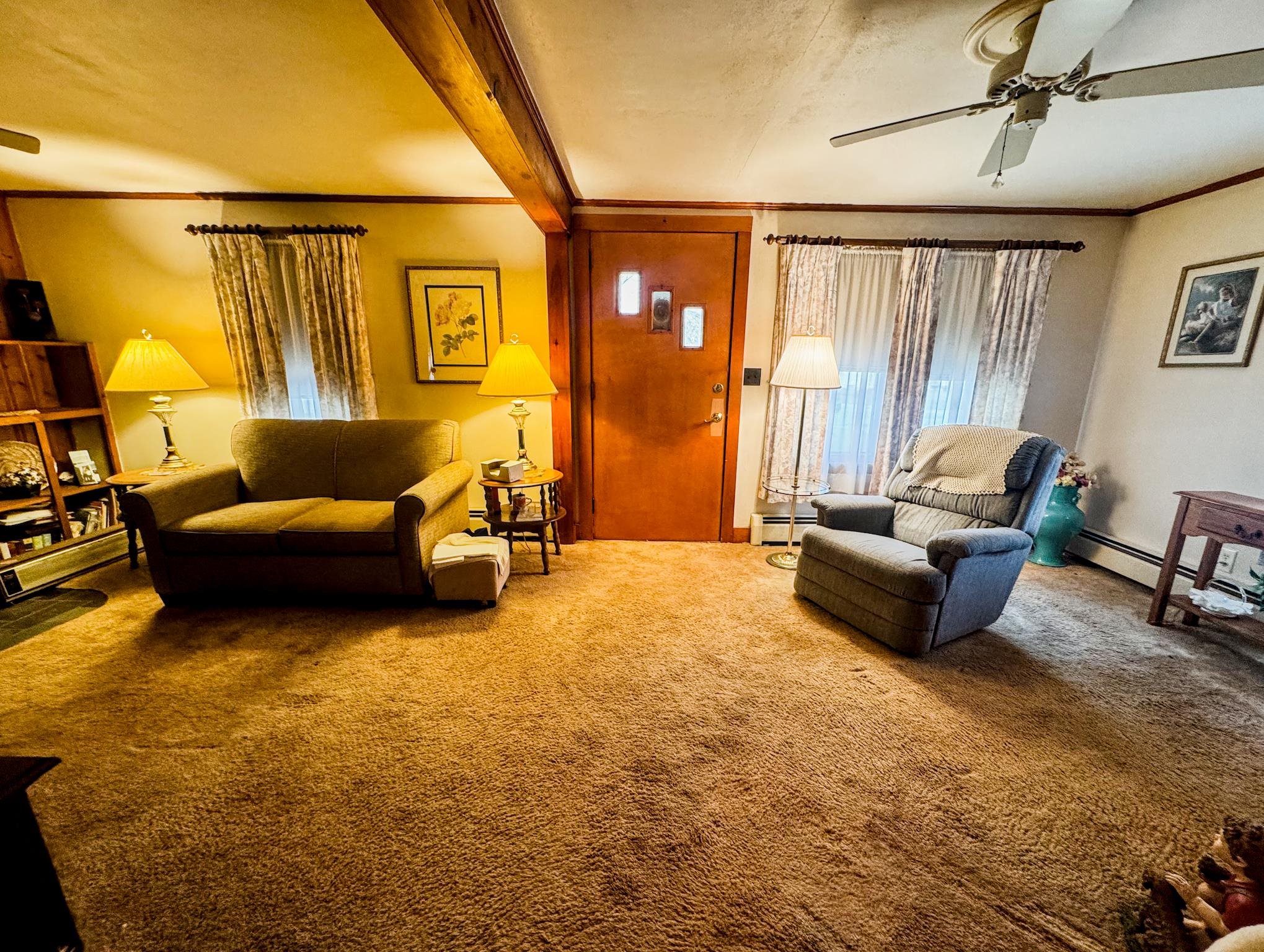 Cute as a button! Located on a dead-end street in a desirable neighborhood in the village of Shaftsbury. This sweet two bedroom home sits on a nice sized lot with some backyard privacy and a beautiful view of the woods. The deep garage has plenty of room for your car and extra storage space in the back. Step into the three season porch where you can enjoy the outdoors without the bugs! The kitchen has an opening to the formal dining room - perfect for entertaining. The spacious living room stretches the length of the house with a large closet, built-ins, and a cozy hearth featuring a wood burning stove. A tiled full bathroom with tub rounds out the first floor. Upstairs are two nice sized bedrooms with gorgeous wood floors. Precious details like glass knobs are classic and elegant. Easy maintenance, vintage charm, and a great location. What's not to love?