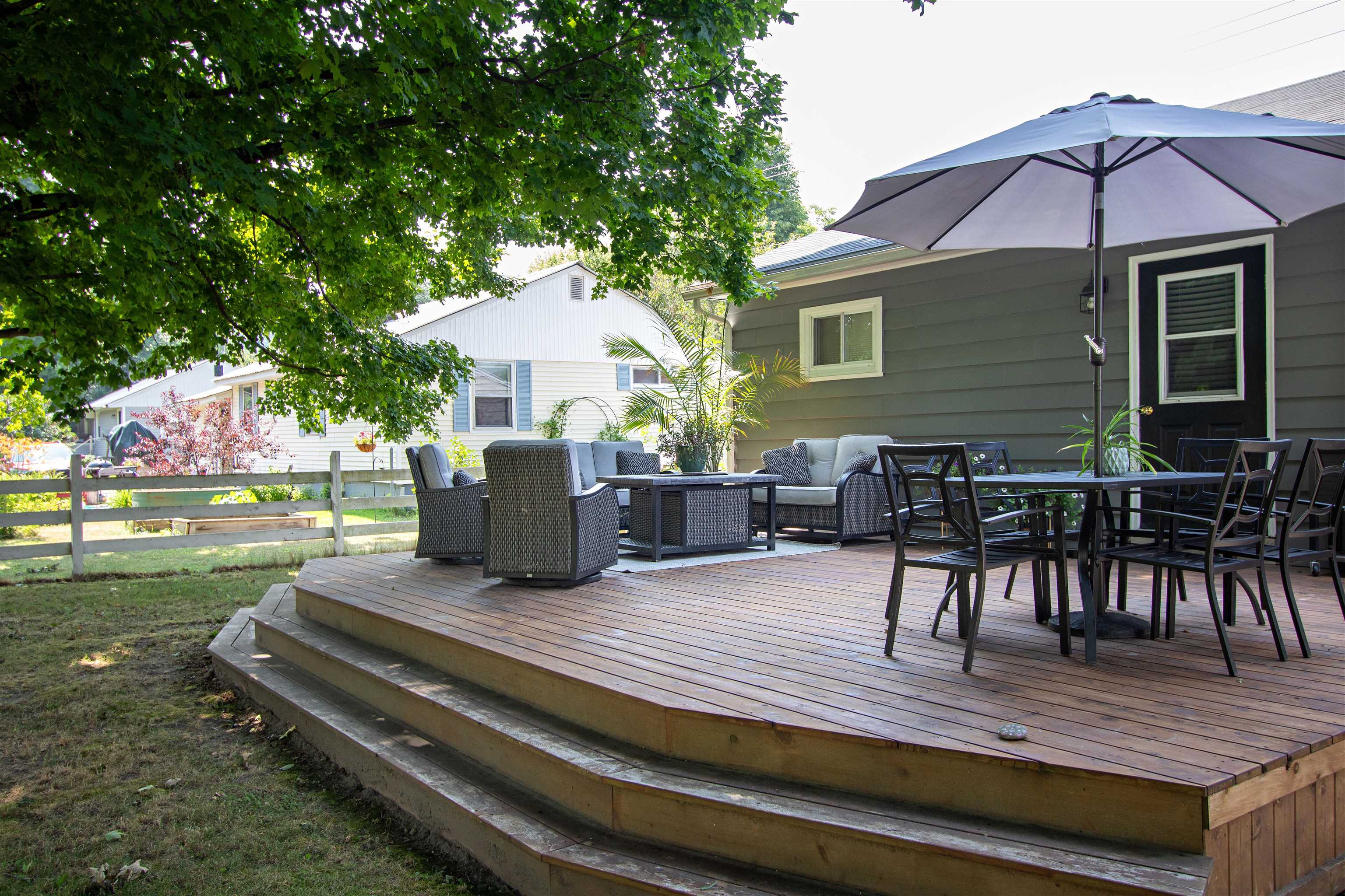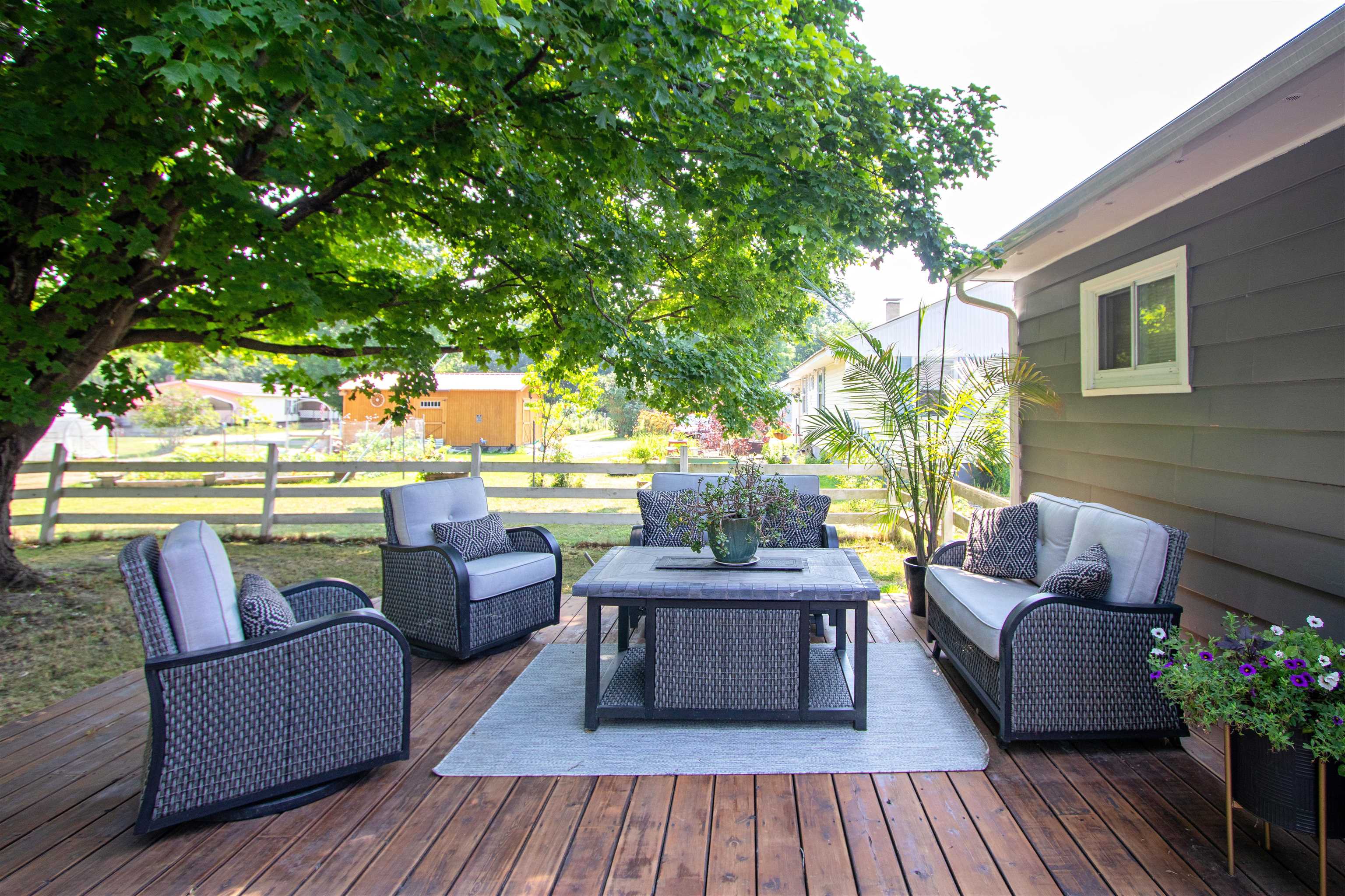 This sweet and stylish ranch has just the right balance of cozy comfort and thoughtful updates. The eat-in kitchen features stainless appliances and flows easily into the bright, welcoming living room. All three main-level bedrooms are nicely sized, with one currently set up as a home office. The full bath has a modern touch, and the lower level gives you options, laundry, hangout zone, storage, plus a finished bonus room. The inviting atmosphere continues outside. The backyard is a standout, spacious, level, and fenced, with two mature trees offering natural shade and the rear of the yard open to sunshine, perfect for gardens, play, or simply stretching out and enjoying the day. A generous back deck invites you to linger longer, whether it’s morning coffee or an evening gathering. A gate at the rear leads to the Moose River, offering a peaceful, unexpected connection to nature. Out front, you’ll find a sweet porch to welcome guests and an attached one-car garage that adds everyday ease. Lovingly maintained and just the right size for someone who craves a simpler space to call their own, comfortable, manageable, and with the bonus of being moments from restaurants, schools, shops, and St. Johnsbury’s vibrant community life.