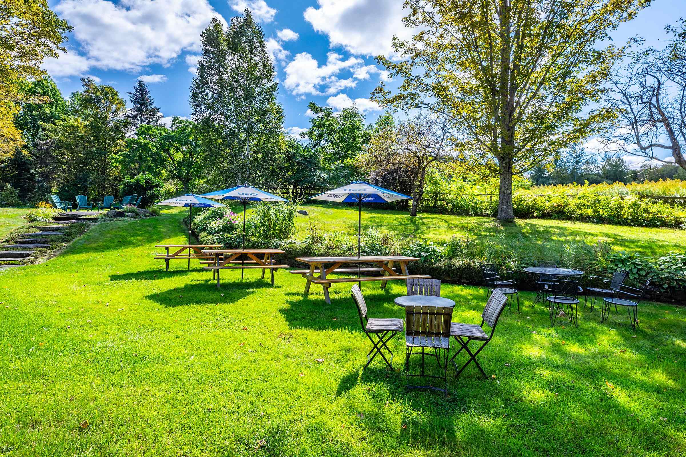 This gracious 1796 Brick Federal homestead was transformed into a popular gathering spot more than 60 years ago. The Barnard Inn has long been considered among the finest dining and hospitality venues in Vermont. It is currently operated as an event destination by the chef-owner and his family. Now, with children grown and off on their own paths, it is time to pass stewardship of the historic property to others, who can return it to private use or continue serving the community as a center of hospitality, helping to cover the costs of ownership. The Inn features original fireside dining rooms, complemented by a rustic tavern serving both classic and inventive 'pub' cuisine. The professional kitchen has undergone a thorough renovation, increasing efficiency and enabling flexibility of culinary styles. Marketing opportunities are limited only by imagination, including the use of expansive lawns for weddings and events in both indoor and outdoor settings among flowering shrubs, mature shade trees, and natural landscaping. The main floor of the Inn features the professional kitchen, tavern, and dining areas. The second and third floors offer private residential accommodation, including 5 bedrooms, 2 bathrooms, and a beautifully designed open-concept country kitchen that leads to a spacious deck with views of the surrounding hills and fields. The post-and-beam barn has been repurposed as an event venue and short-term rental, with a yoga studio. The main level of the former working barn is open to a height of 36’, overlooked by the expansive hay loft. The barn is large enough to host up to 60 guests for dinner and 100 for casual events. A 2-bedroom building site beside the spring-fed pond has been approved, with additional sites potentially available by reallocating the existing septic system. The location is ideal for ‘glamping’ with nearby Silver Lake, miles of trails, and outdoor recreational activities drawing tourists throughout the year.