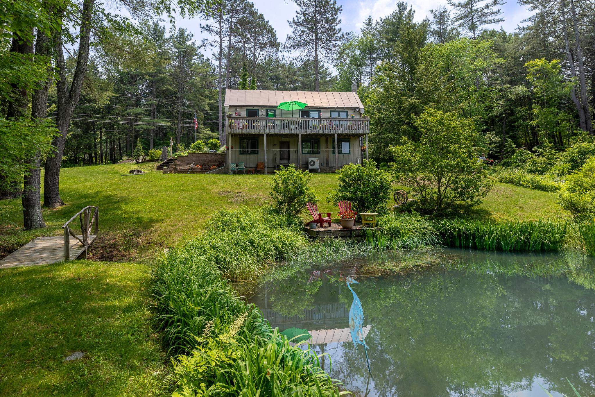 Adorable partially furnished 3 bedroom, 2 bath home on landscaped 1.53 acres corner lot in the heart of Ascutney Mt Resort! Many upgrades including Bosch High Efficiency Propane Boiler, Mitsubishi heat pump/AC, Rinnai on demand hot water heater, new well tank & centrifuge filtration system, new fireplace & chimney with Woodstock soapstone woodstove flanked by custom cabinets on each side. Decks, extensive perennial gardens, pond, vegetable garden area & fruit trees. Outbuildings for various storage needs. Automatic/timed lighting on granite posts line the driveway. Be part of the action at Ascutney Outdoors; walk to hiking & mountain biking, skiing & tubing just outside your door! Ascutney Mountain has protective covenants including rights of 1st refusal.