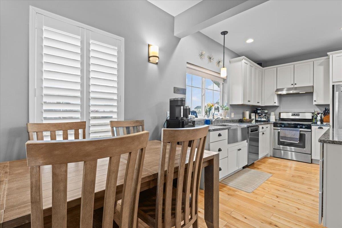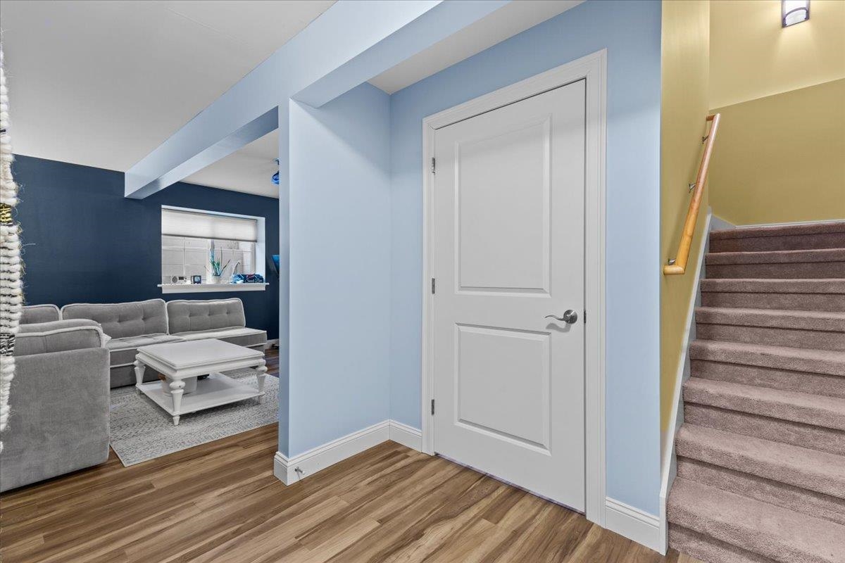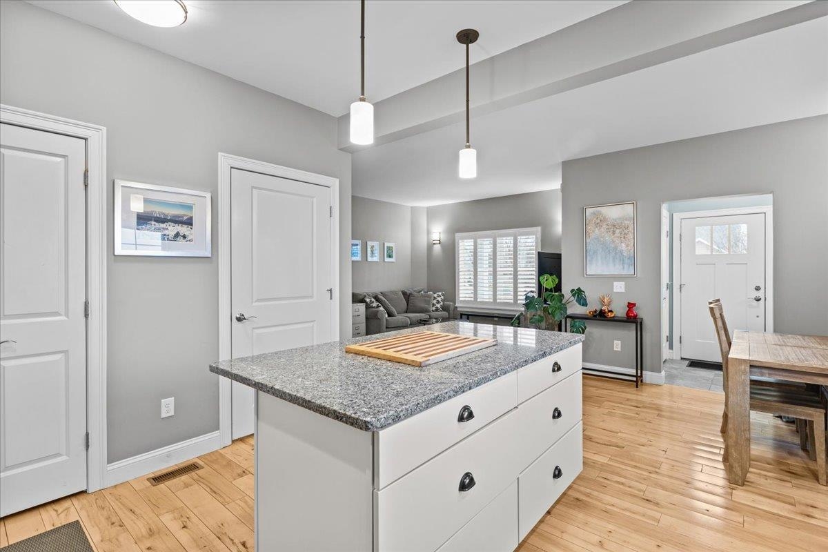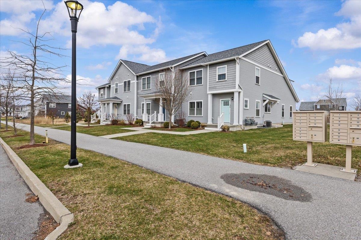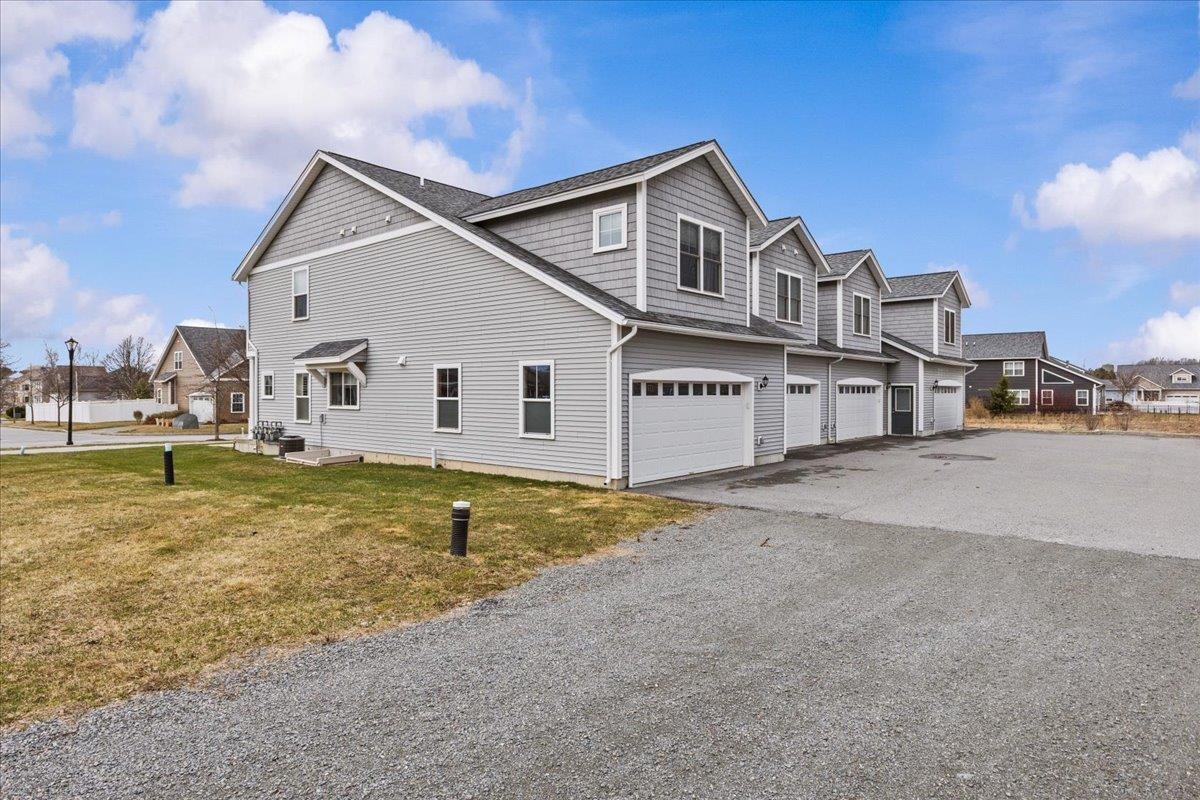 This inviting and well maintained end-unit home offers comfort, privacy, and thoughtful upgrades throughout. The main level features a bright, open concept layout with a spacious kitchen, hardwood floors, living, and dining area, perfect for everyday living and entertaining. The kitchen is beautifully appointed with upgraded cabinetry, granite countertops, a vented hood, pot drawers, a spice cabinet, and breakfast island. All 3 bedrooms are tucked away on the second floor for added privacy. The finished basement expands your living space with a cozy living room, workout area, laundry room, and abundant storage, complete with durable waterproof luxury vinyl plank flooring. Enjoy peaceful views from the kitchen overlooking the neighborhood walking path and playground. Located in the desirable Rye Meadow community, this end unit home sits in a quiet setting of single-family homes and townhomes, offering exceptional privacy. Outdoor enthusiasts will love easy access to hiking and biking paths. Close to Burlington, schools, shopping and restaurants this location cannot be beat!
