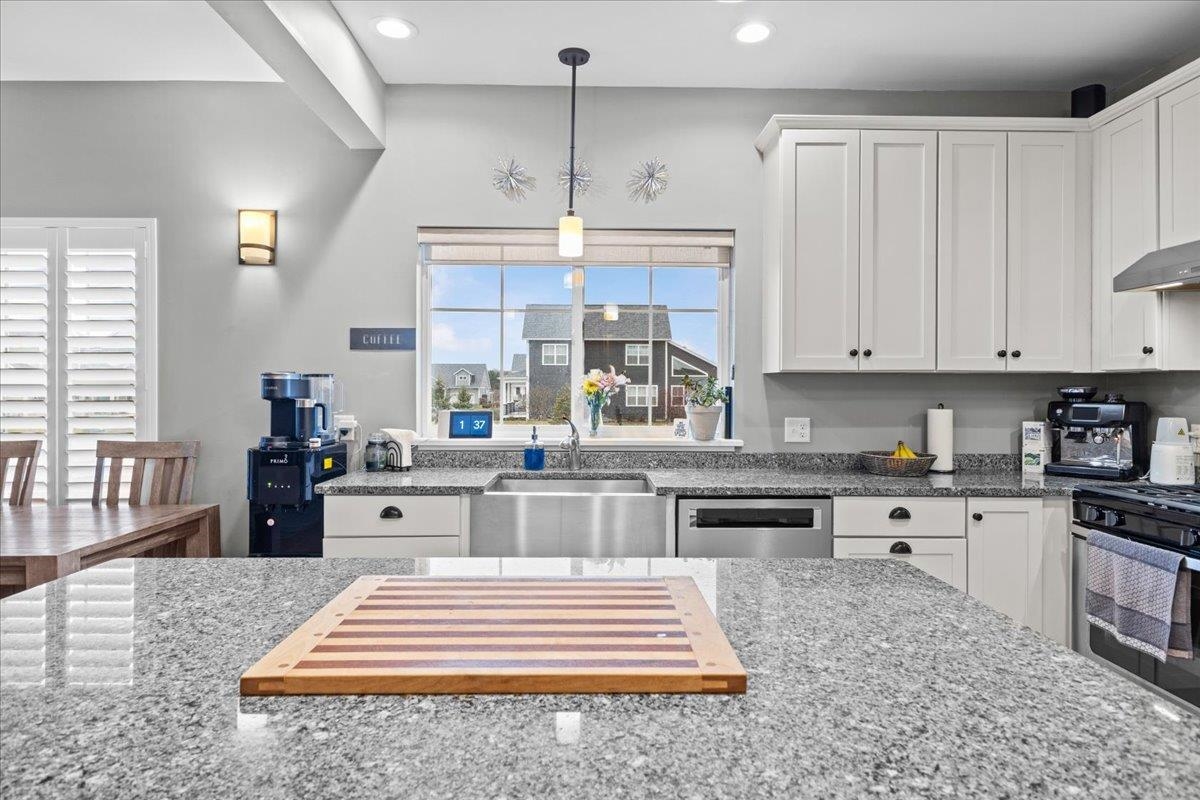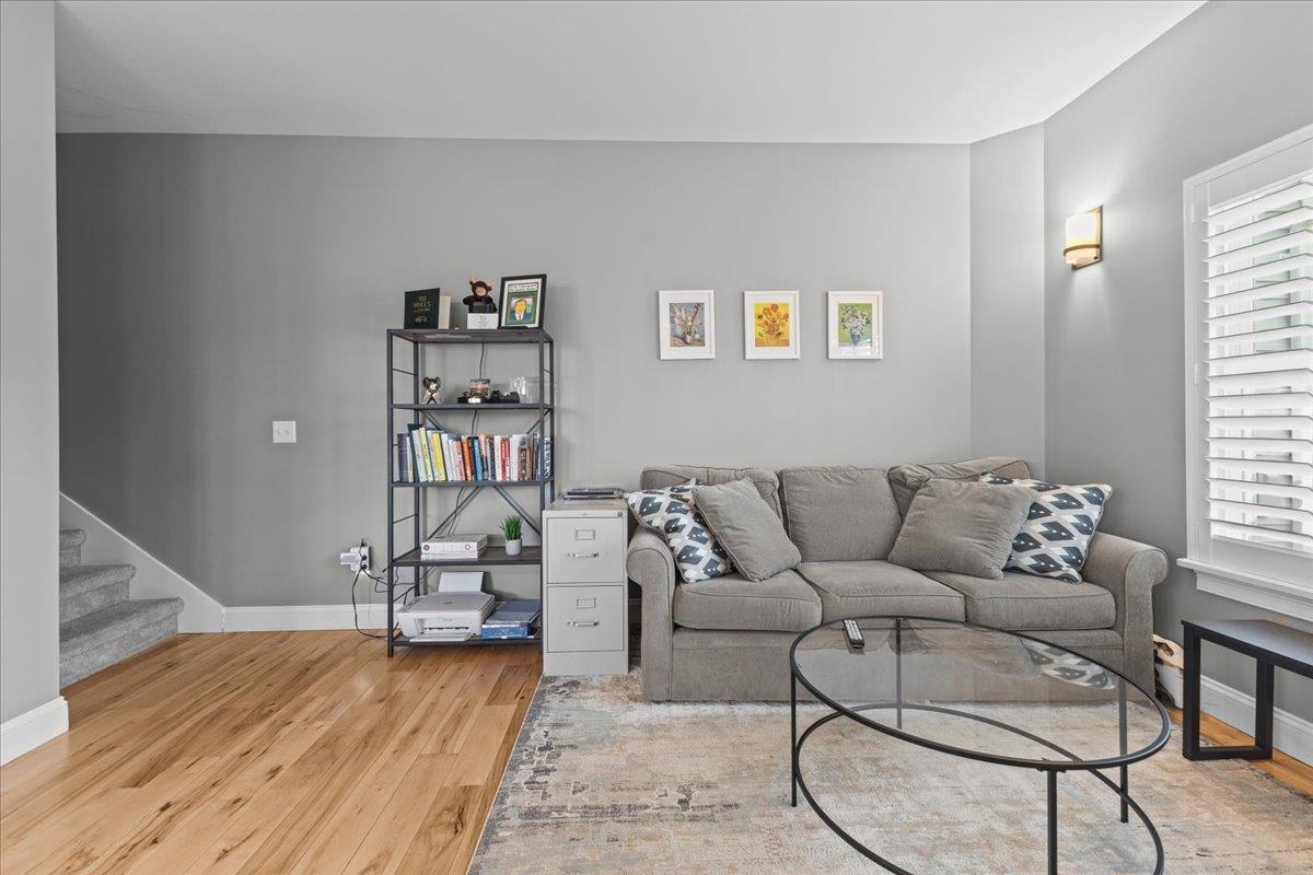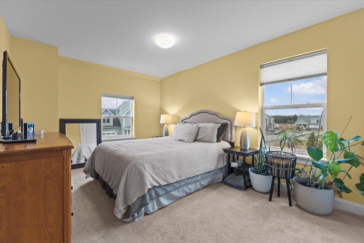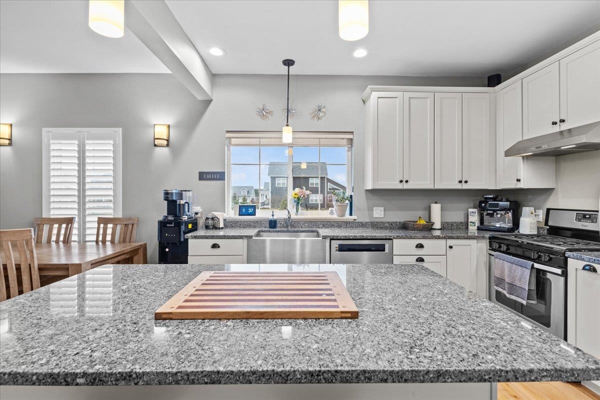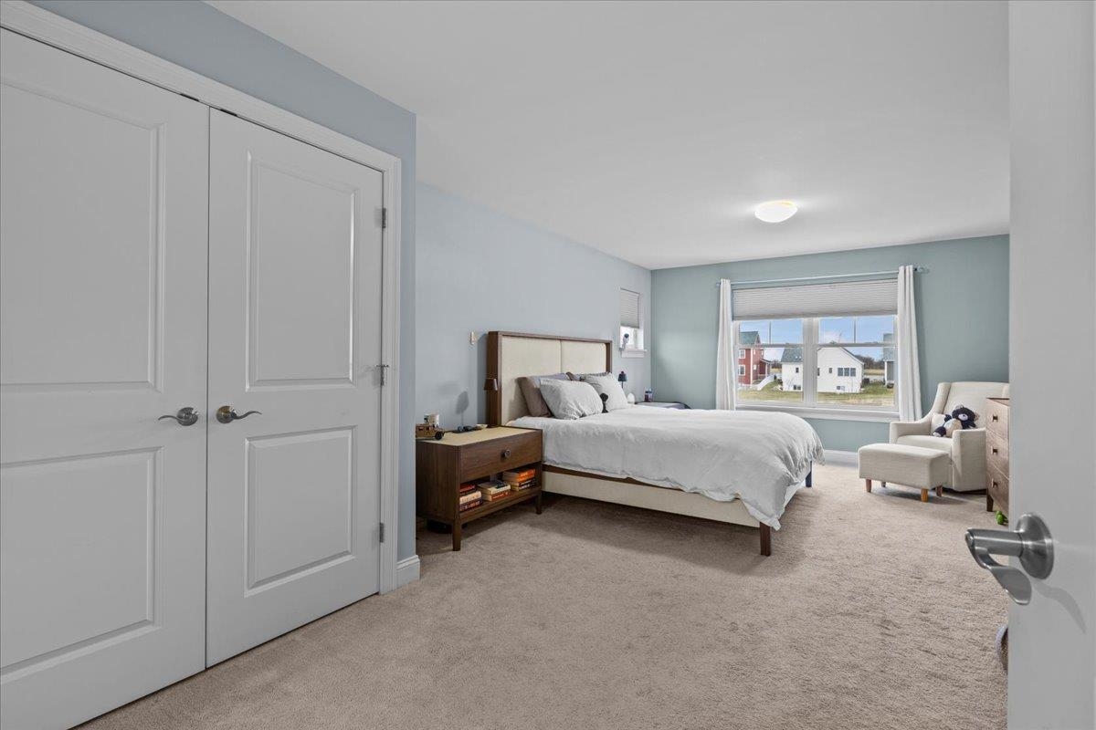 This inviting and well maintained end-unit home offers comfort, privacy, and thoughtful upgrades throughout. The main level features a bright, open concept layout with a spacious kitchen, hardwood floors, living, and dining area, perfect for everyday living and entertaining. The kitchen is beautifully appointed with upgraded cabinetry, granite countertops, a vented hood, pot drawers, a spice cabinet, and breakfast island. All 3 bedrooms are tucked away on the second floor for added privacy. The finished basement expands your living space with a cozy living room, workout area, laundry room, and abundant storage, complete with durable waterproof luxury vinyl plank flooring. Enjoy peaceful views from the kitchen overlooking the neighborhood walking path and playground. Located in the desirable Rye Meadow community, this end unit home sits in a quiet setting of single-family homes and townhomes, offering exceptional privacy. Outdoor enthusiasts will love easy access to hiking and biking paths. Close to Burlington, schools, shopping and restaurants this location cannot be beat!
