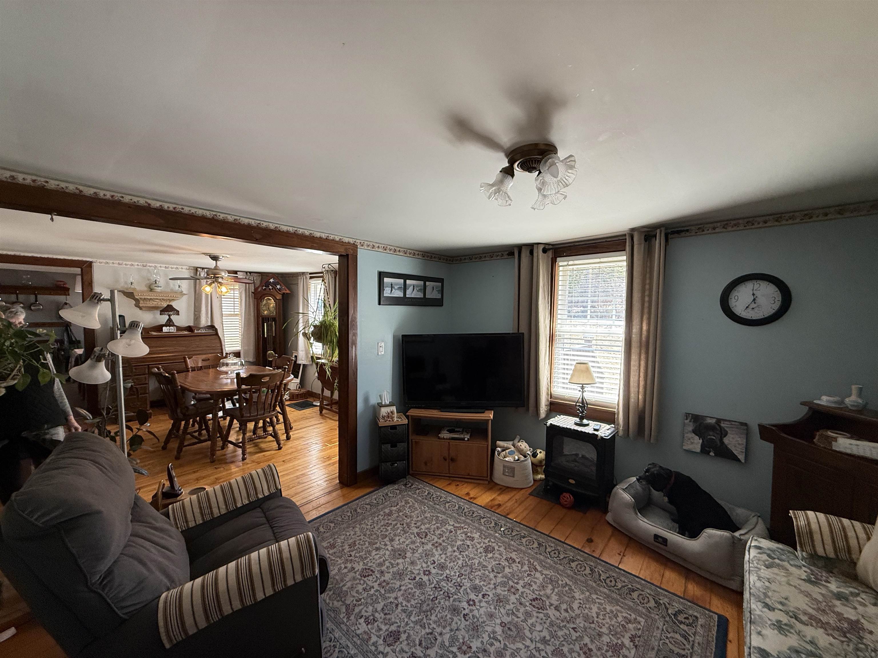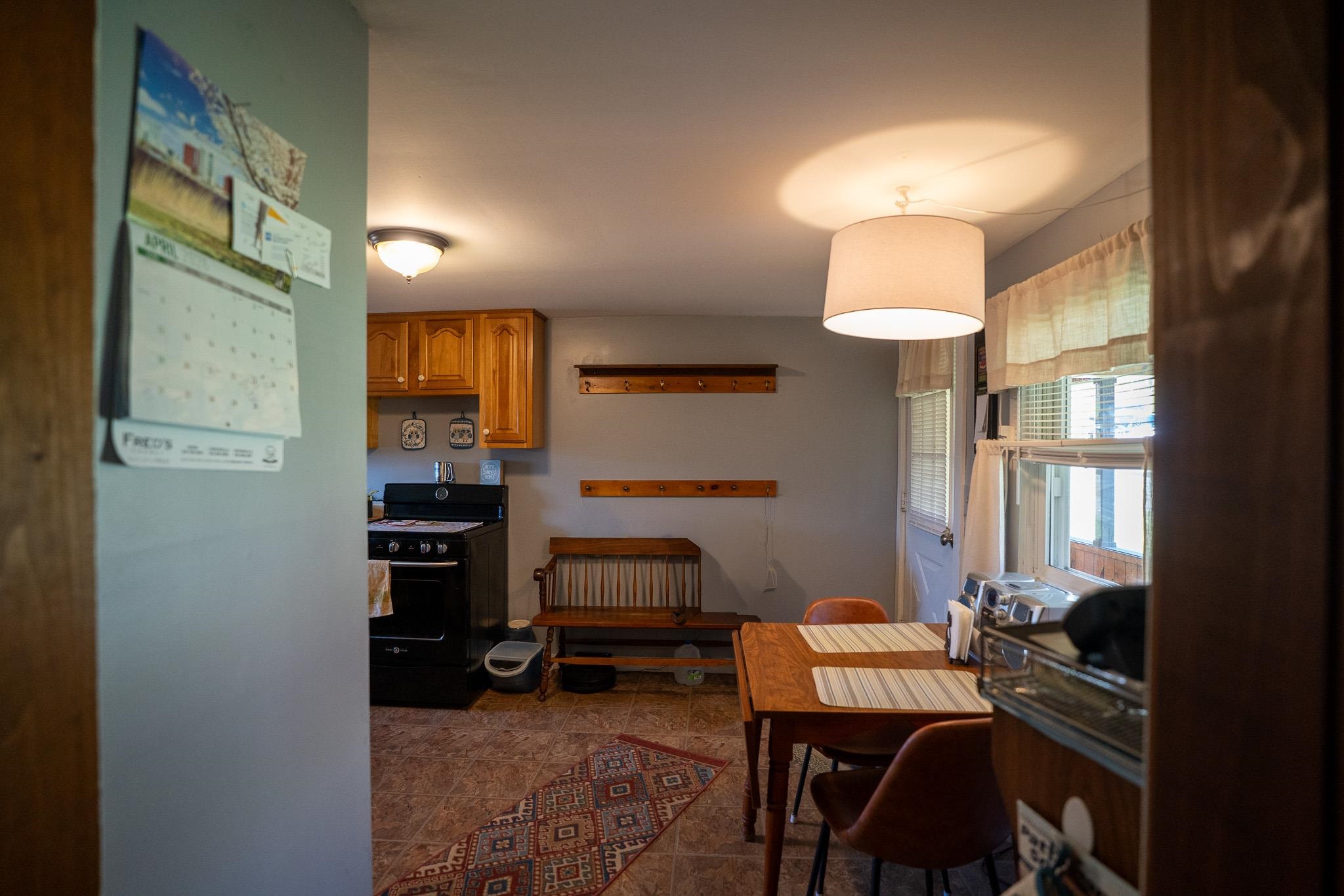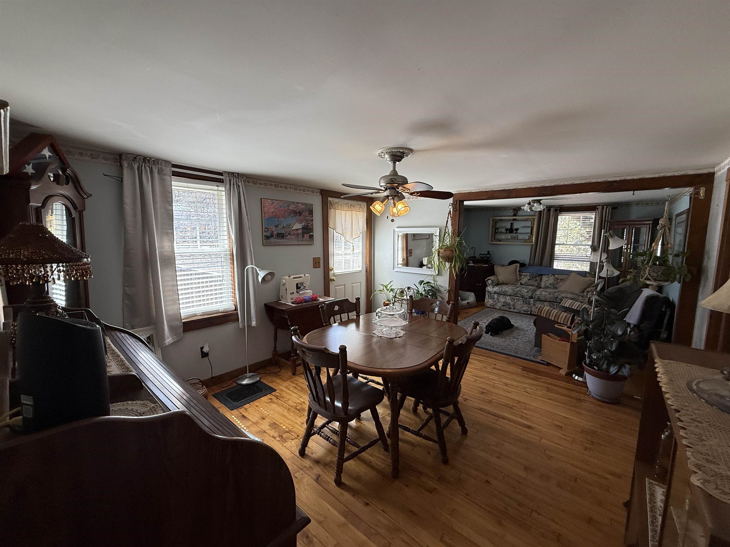 Here's a well cared for old bungalow sytle farmhouse on a roomy 3.1 acre lot in a great rural location that is an easy commute to St. Johnsbury or Littleton. The eat in kitchen features modern wood cabinets and a vinyl floor. The range and refrigerator are included. The spacious dining room and lving room offer plenty of living space as well room to entertain guests. The large bedroom offers the laundry area as well as closet space. There is a walk up attic for extra storage space. The full basement has plenty of head room and most of the original stone foundation has been redone with poured concrete. There are an oil forced hot air furnace as well as an electric water heater. The oversized 2 car garage is accessed by a covered breezeway. An open stairway leads to the 2nd floor with lots of storage space. You have a drilled well and a septic system. The open yard offers plenty or room for a garden, a chicken coop, yard games, and more. Call for your personal viewing. Delayed showings start on Friday, April 24.