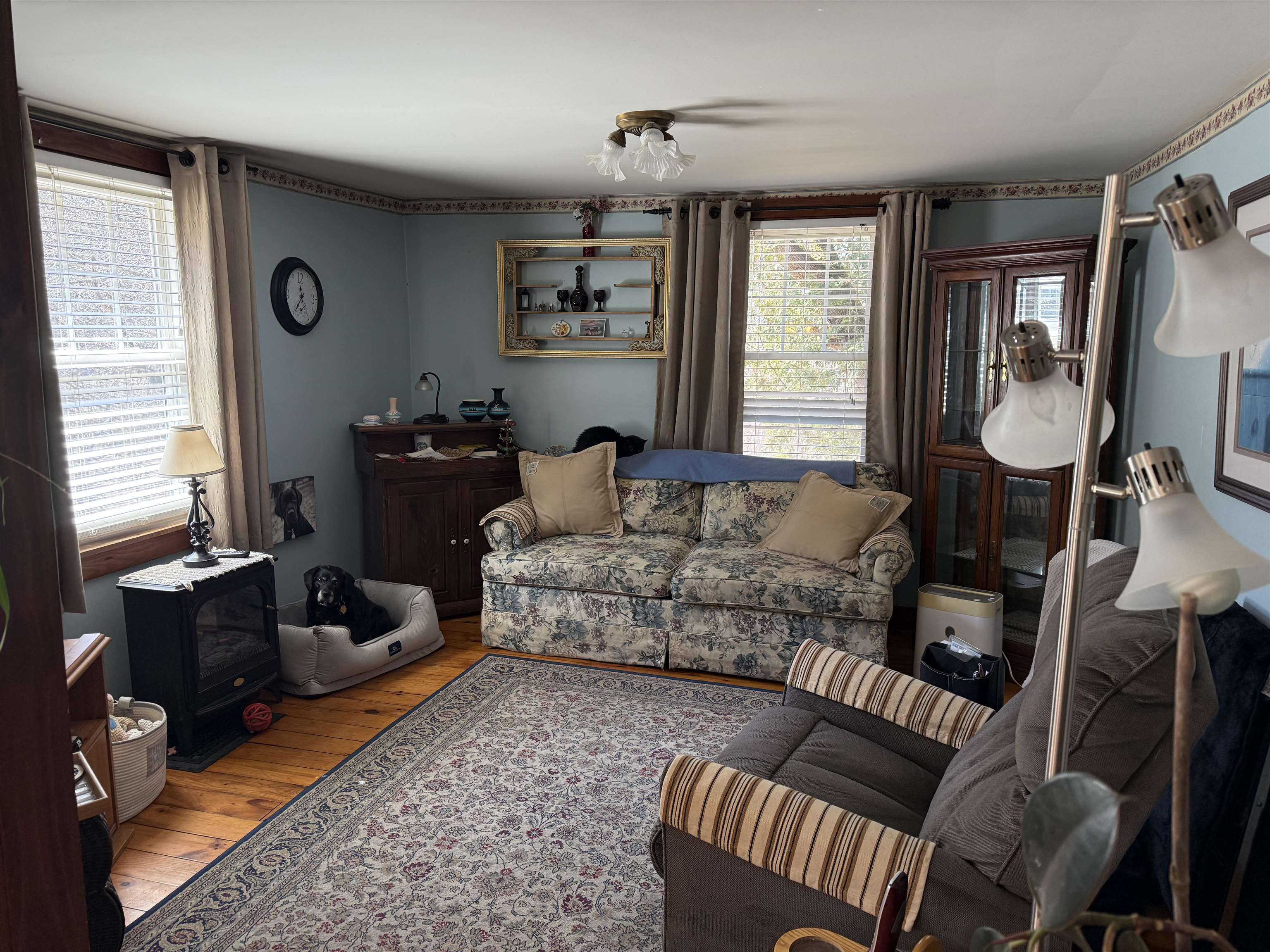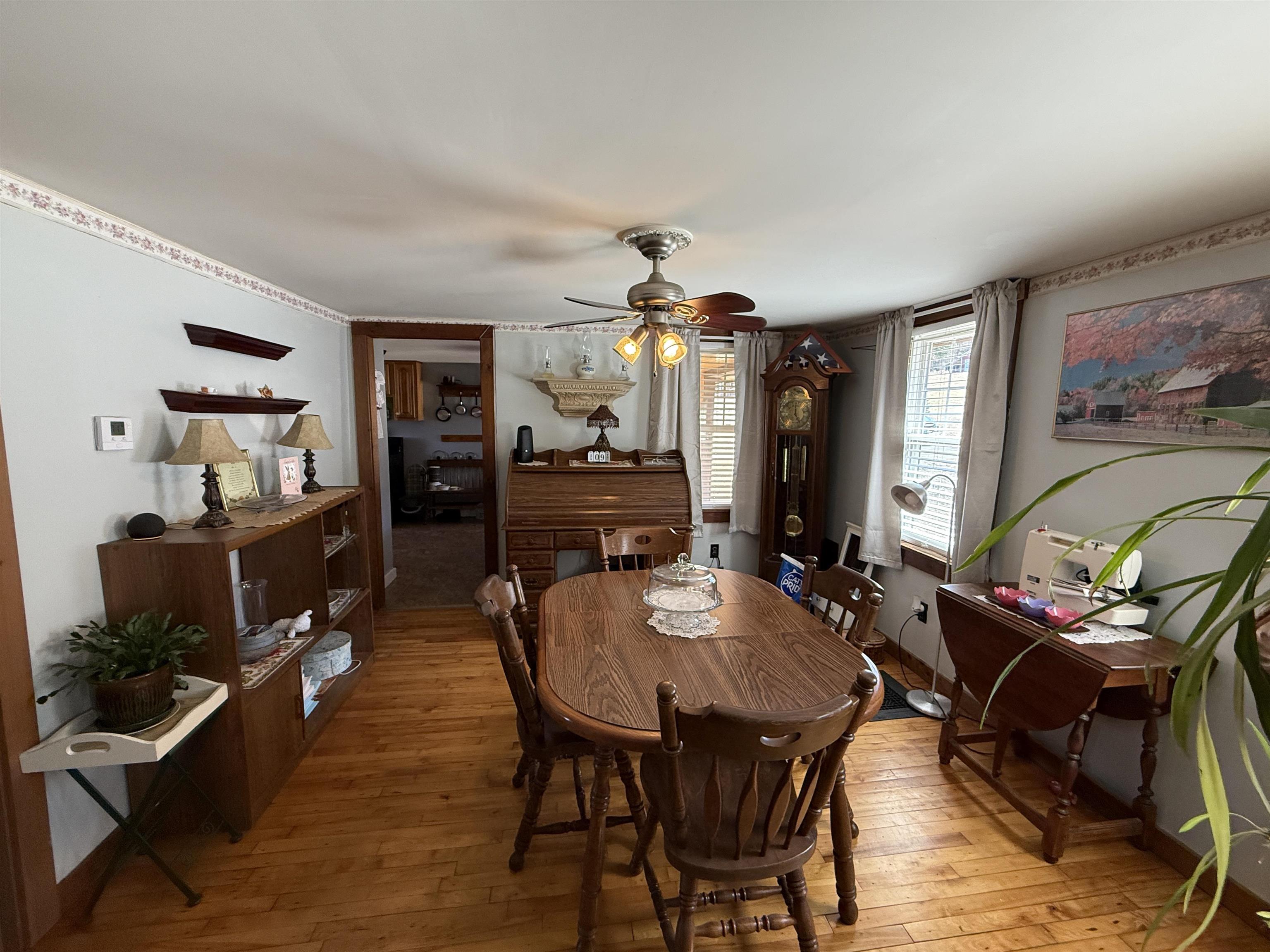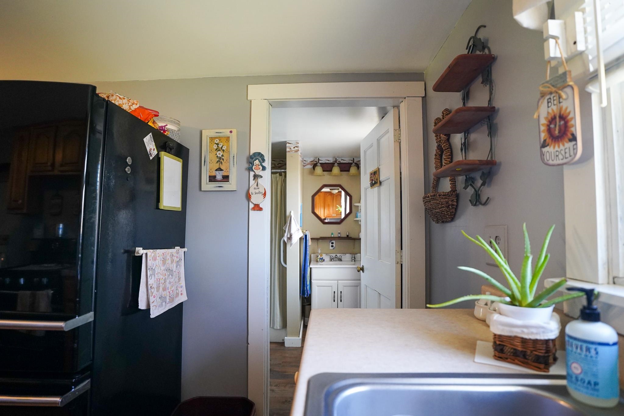 Here's a well cared for old bungalow sytle farmhouse on a roomy 3.1 acre lot in a great rural location that is an easy commute to St. Johnsbury or Littleton. The eat in kitchen features modern wood cabinets and a vinyl floor. The range and refrigerator are included. The spacious dining room and lving room offer plenty of living space as well room to entertain guests. The large bedroom offers the laundry area as well as closet space. There is a walk up attic for extra storage space. The full basement has plenty of head room and most of the original stone foundation has been redone with poured concrete. There are an oil forced hot air furnace as well as an electric water heater. The oversized 2 car garage is accessed by a covered breezeway. An open stairway leads to the 2nd floor with lots of storage space. You have a drilled well and a septic system. The open yard offers plenty or room for a garden, a chicken coop, yard games, and more. Call for your personal viewing. Delayed showings start on Friday, April 24.