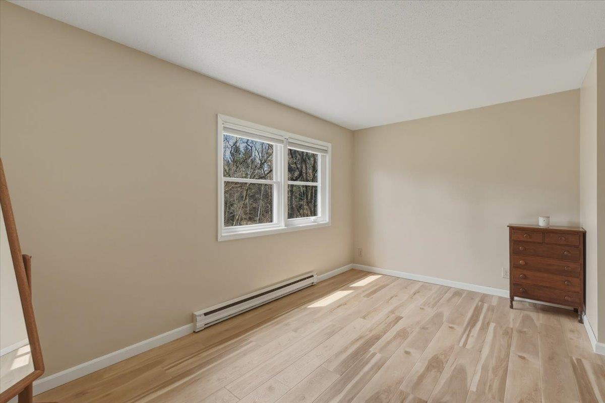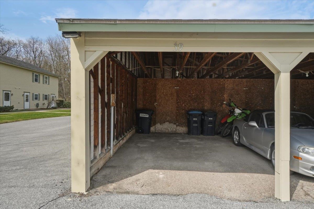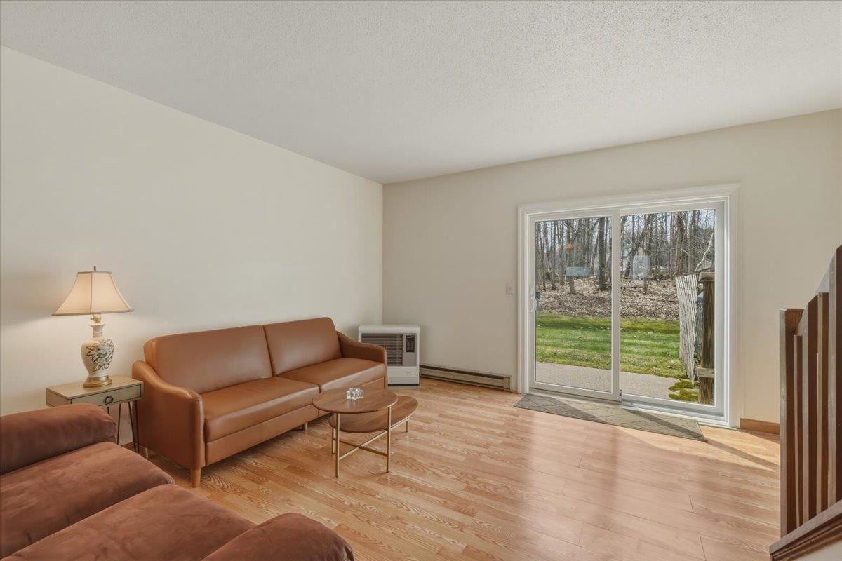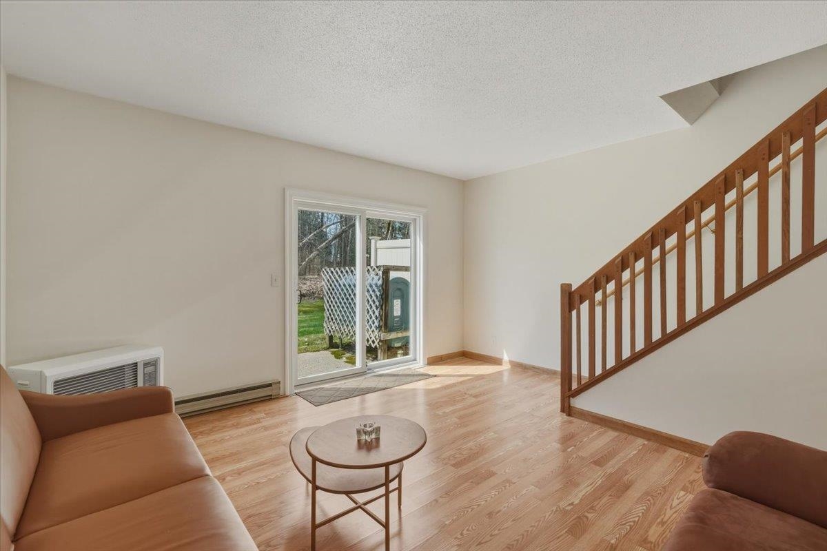 Welcome home to a bright two-bedroom townhouse in a well maintained neighborhood tucked away in a great location close to shopping, restaurants, bike paths and trails. Recent updates include stainless steel electric range and microwave, luxury vinyl plank wood flooring upstairs, carpet on the stairs, new sink in the half bath, 3 new thermostats and a new sliding door off the family room. Enjoy the private yard backing up to trees while relaxing on your patio. Other extras include a kerosene wall unit heater and a stacked washer and dryer in the full bath. The bedrooms are spacious with large closets. Park your car in the car port and enjoy turn-key living in time for summertime in Vermont! Rentals are allowed.