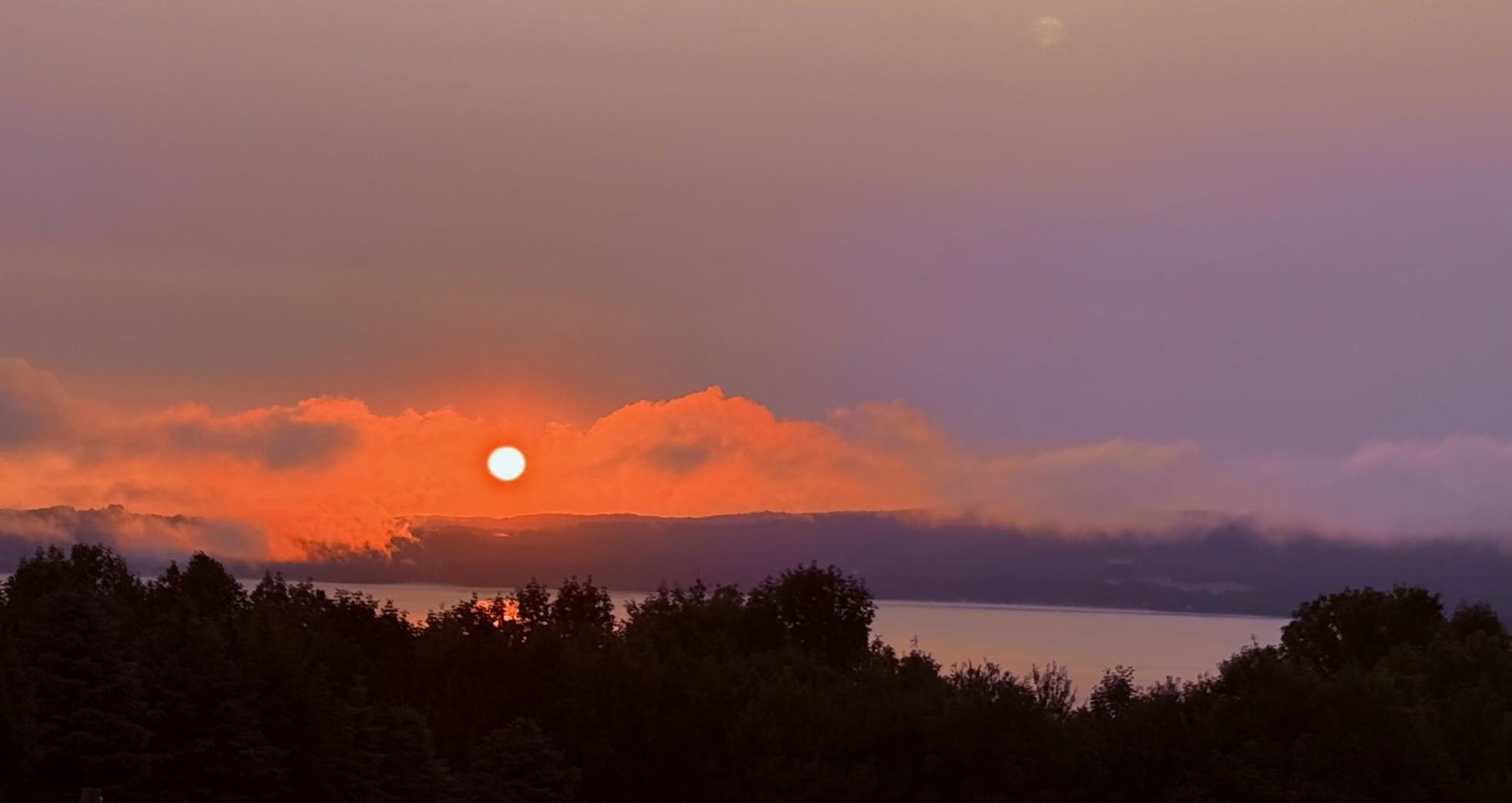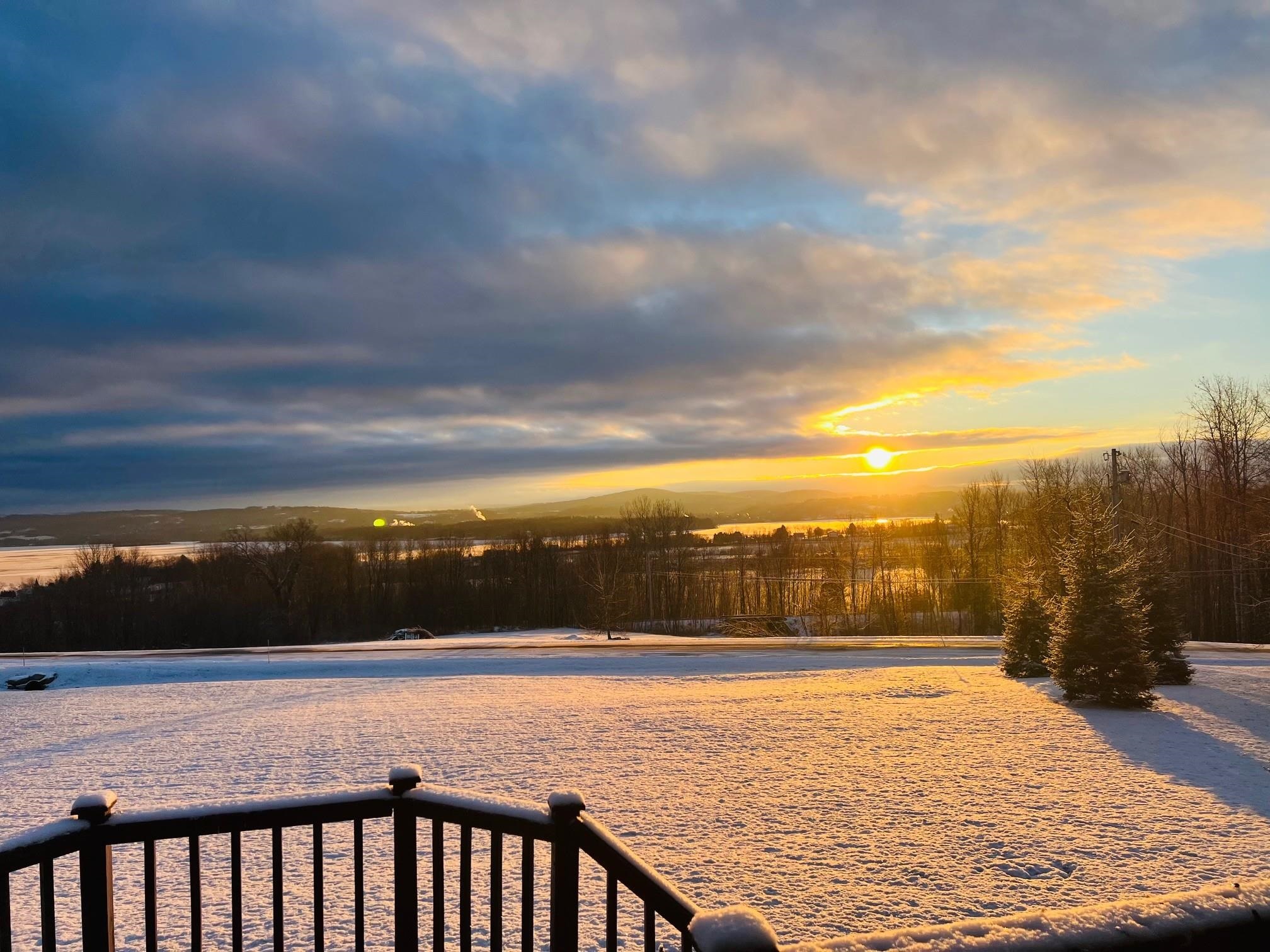 Enjoy unparalleled eastern exposure and sweeping views of Lake Memphremagog from this elegant and comfortable 3-bedroom, 3.5-bath home, thoughtfully designed for both everyday living and entertaining. The main level showcases gleaming hardwood floors and an open, inviting layout. A beautifully renovated kitchen (2020) features granite countertops with a striking waterfall edge, perfect for any culinary enthusiast. The formal dining room, spacious living room with oversized windows, and a warm, inviting family room with wood ceilings and a wood-burning fireplace create ideal spaces for gatherings and making lasting memories. Step outside to the recently updated composite back deck or relax on the charming front porch—perfect for morning coffee or quiet reflection. A convenient mudroom/drop zone and half bath connect directly to the attached two-car garage. Upstairs, you’ll find three bedrooms and two full baths, including a generous primary suite with French doors overlooking the living space below and abundant natural light. The walk-in closet is impressively spacious, and a central hallway seating area offers a flexible space for a home office or reading nook. Laundry is also conveniently located on this level. The finished lower level provides additional living space with a generous family room, fireplace, large windows, and a ¾ bath. A projector and movie screen are negotiable, making it perfect for movie nights or entertaining. The grounds lend to lush landscaping, resurfaced driveway, drainage work and loads of perennials. Located in a premier neighborhood this is a 'once in a lifetime' home. Let's make it yours! Recent updates include a new hot water tank, oil tank, central vacuum system, kitchen and bath renovations, and the composite back deck. Privately set in the countryside yet just minutes to town, this home offers easy access to skiing, lakes, golf, and all the Northeast Kingdom has to offer.