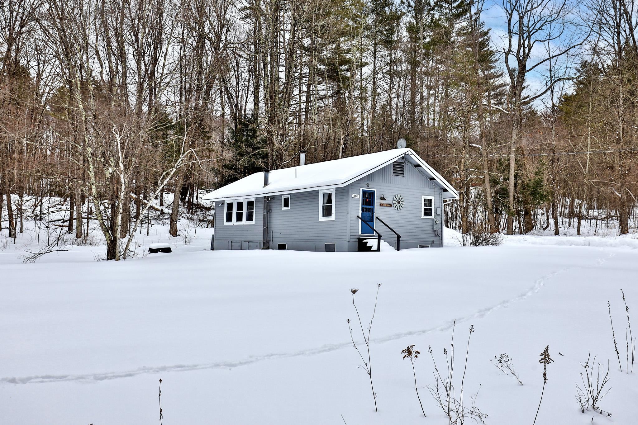 Tucked away on a private road. This expansive parcel sits just outside West Rutland. Charming 3 bedroom/1 full bath Vermont retreat offers peaceful woodland surroundings and tranquil views. On clear nights, enjoy exceptional stargazing with the Milky Way visible from your own backyard. The open-concept living area is filled with natural light, with windows on three sides framing serene forest and meadow views. A well-appointed kitchenette and inviting living space create a warm and comfortable setting for relaxing weekends or extended stays. Ideally located near Pico Mountain, Killington Resort, and Okemo Mountain Resort, this property provides easy access to skiing, snowmobiling, hiking, and year-round recreation. Whether you’re seeking a vacation home or an investment opportunity, this versatile property offers the best of Vermont living.