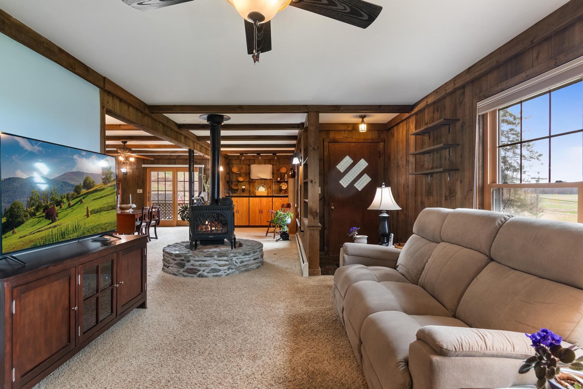 Sweet 3-bedroom, 1-bath Colchester ranch set on a beautiful 1.06-acre lot with mountain and pasture views, where a sense of peace welcomes you home the moment you arrive. Inside, sunlight pours into a warm and inviting living space accented by natural woodwork. The open living and dining area creates an easy, comfortable flow—perfect for everyday living and gathering alike—anchored by a cozy gas stove with a beautiful stone base that adds both charm and a sense of home. Large front windows offer incredible sunset views year-round. The eat-in kitchen is equally inviting, featuring Venetian Gold marble countertops, a brand new gas range (2025), and a brand new dishwasher (2026). Just beyond the living space, find three comfortable bedrooms that offer restful spaces, and a full bathroom with a large vanity, tub/shower combo, and an additional stall shower. Upstairs, a partially finished attic provides flexible bonus room—ideal for a home office, playroom, or a quiet retreat tucked away from it all. Step outside and the story continues. A spacious back deck with an awning overlooks the yard and in-ground pool, setting the scene for long summer days, weekend barbecues, and evenings spent under the open sky. A front porch overlooking the mountains, garden space, two outdoor sheds, and a lush lawn add to the property’s charm and usability. Additional highlights include a walkout unfinished basement and a one-car garage with direct entry. Thoughtful updates, including a new furnace (2023), LeafGuard gutters (2021), and newer windows (2014) with custom Gordon blinds—bring comfort and peace of mind. With scenic views, flexible living space, and a warm, welcoming feel throughout, this is a home where memories are made. Lovingly cared for over the years, this home is ready to begin its next chapter.