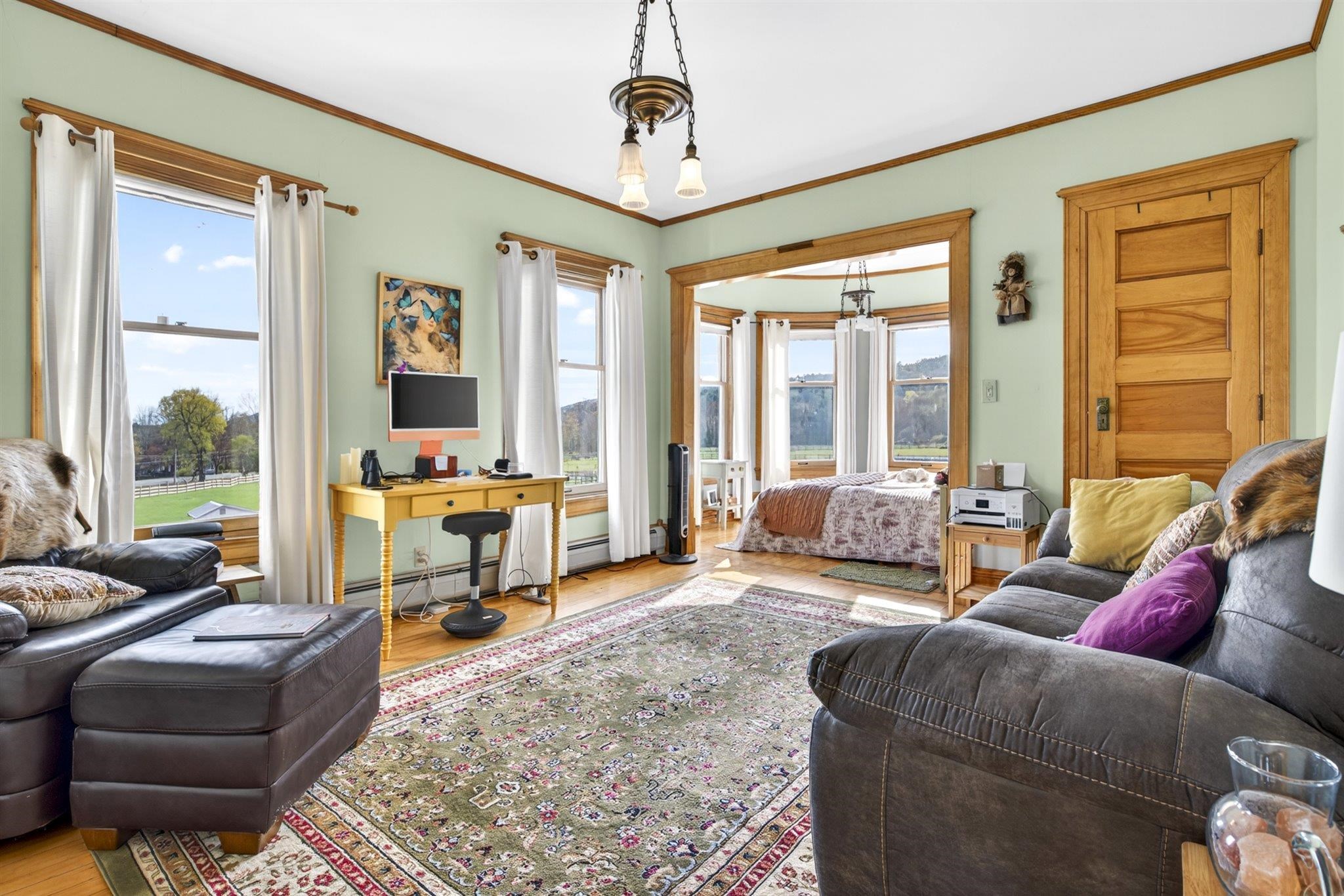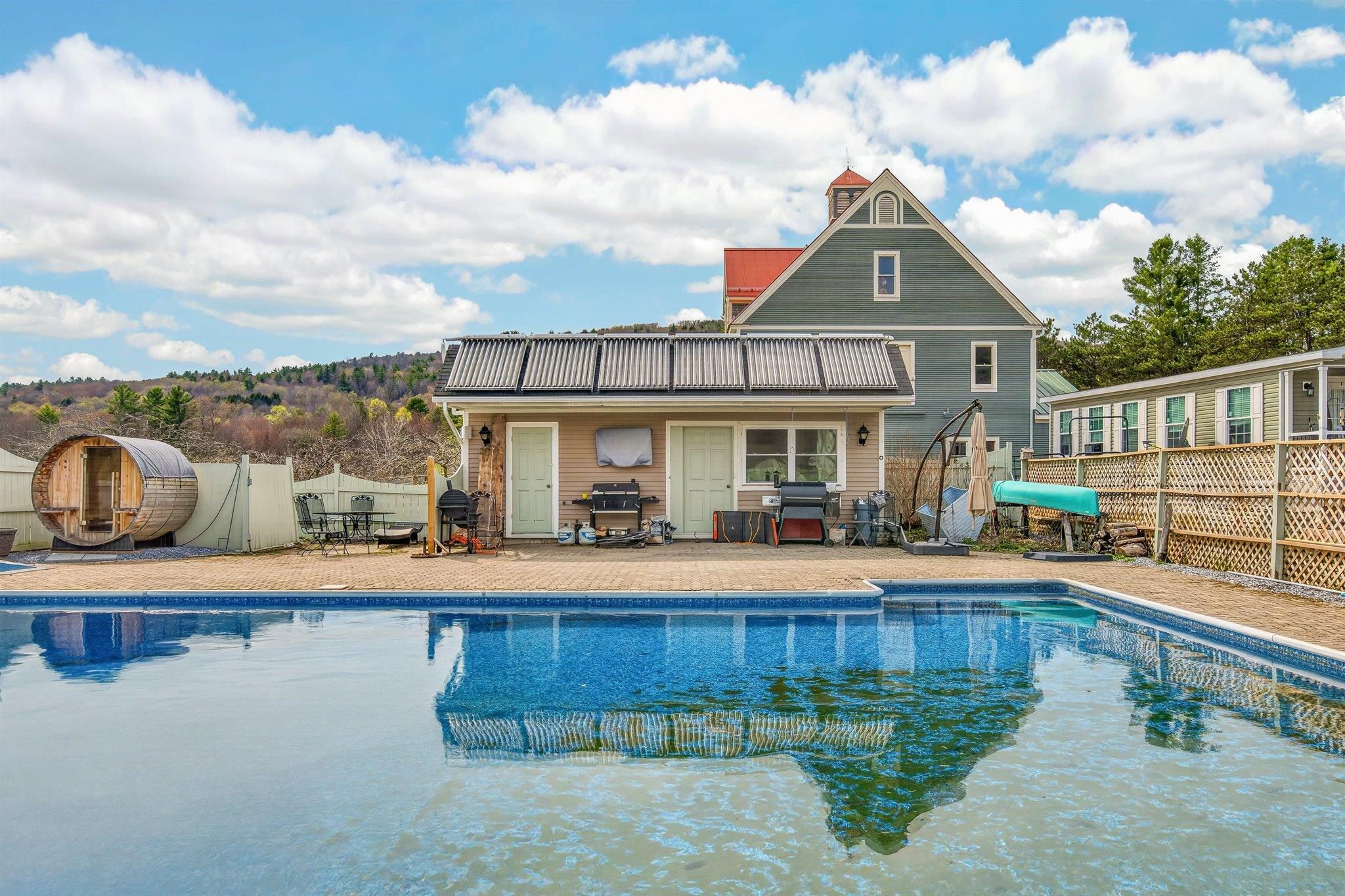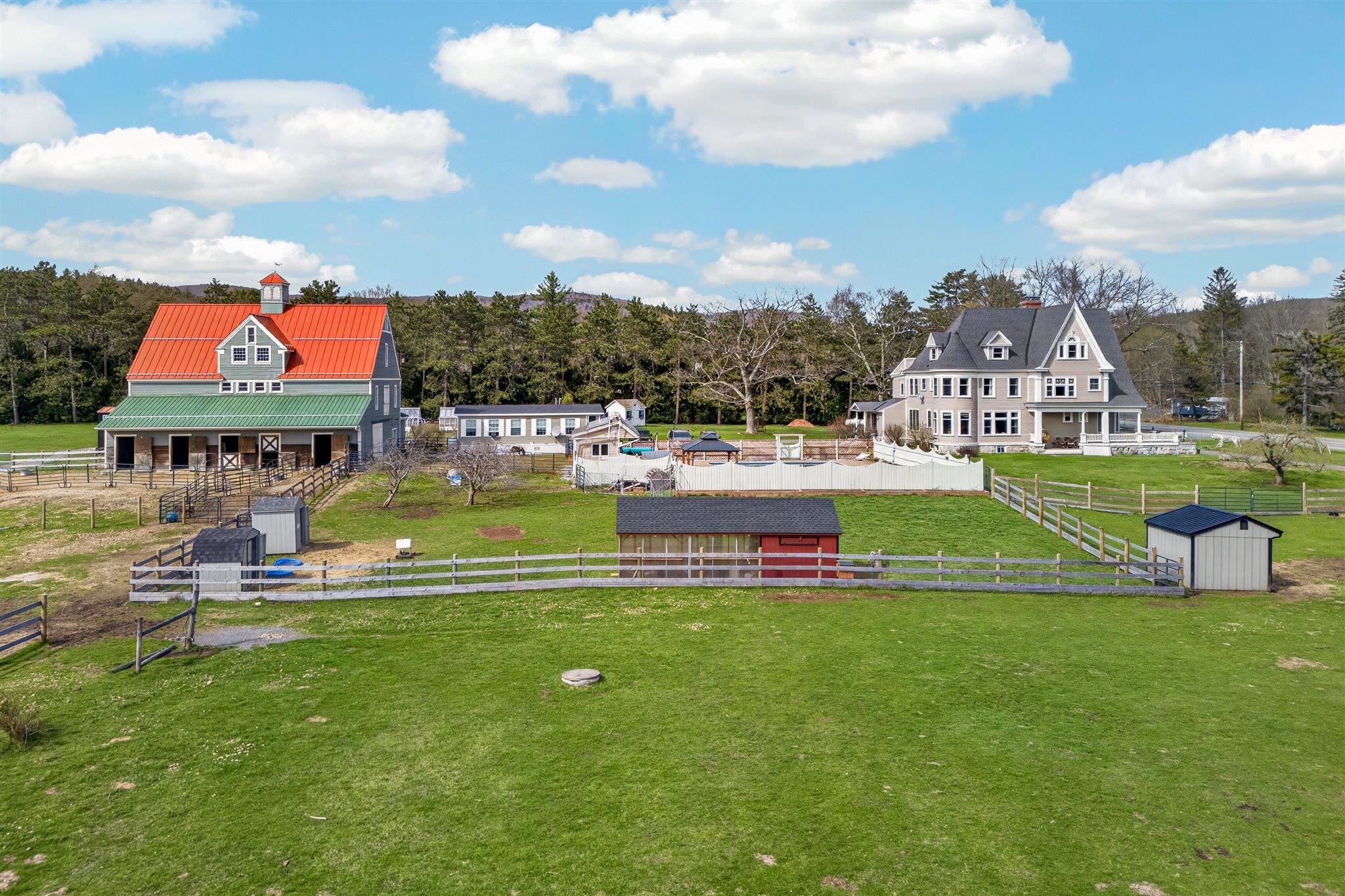 Step into the most amazing Victorian house you will ever see! Built in 1880, you will feel like you've walked back in time. Beautiful architecture and woodwork. The house was built by John Tudor, a Welsh immigrant who had made a fortune as a mill owner in northern Vermont and settled in Stamford. There is a stunning 3 floor Post & Beam Barn with a 2 car garage built-in. Barn also features 4 stalls with room for a 5th, tack room, hayloft, along with some finished sq ft with electric, heat and water. Also included is a 2nd home on the property. It's a 2 bedroom 870 sq ft 1 story Modular. Other amenities include a very large in ground salt water pool with new liner along with a beautiful pool house with outdoor kitchen and bathroom, sauna, green houses, shed and a tiny vineyard with 50 vines! Two duck houses and a small 10 x 8 cow barn. Oh, I almost forgot the chicken coop! 400 amp Whole House Generator. 2 septics and 2 drilled wells. Located on the southern border of Vermont with mountain views of Mt Greylock in the Berkshire Mountains. Just under 10 acres of level land with fruit trees. 2 Stone Lions in the front yard have been a marque in the village for years. This property has so much to offer in a small southern Vermont town!