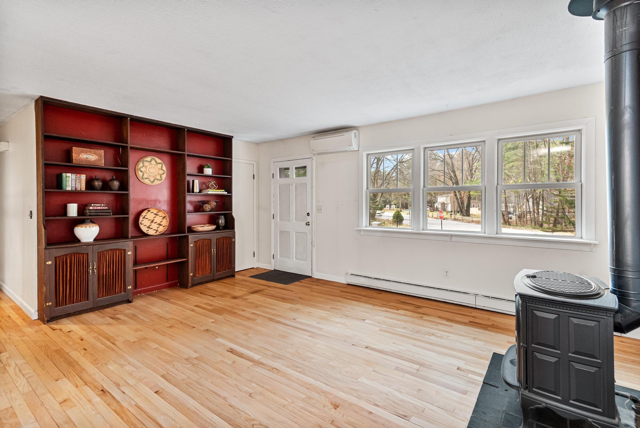 Welcome to this lovingly maintained 3-bed, 1-bath ranch nestled in the sought-after Birchwood Manor neighborhood- a home that has been truly cherished and cared for by its original owners, now ready to welcome its next owners. From the moment you arrive at the inviting front porch, you can feel the warmth this home offers. Step inside to a bright, open-concept living space where sunlight pours through large windows, highlighting beautiful hardwood floors and thoughtful built-ins. A cozy gas stove and efficient mini split create year-round comfort, making this the perfect place to gather and relax. The sweet, efficient kitchen is filled with charm, featuring an electric range and a peaceful view of the backyard from the sink. Just beyond, the home continues to unfold with a cozy sitting room wrapped in beautiful wood-paneled walls, complete with a second gas stove set against a classic brick surround, and a mini-split. Here you will also find a tucked-away office nook and easy access to the backyard and garage through a slate-floored mudroom. On the opposite side of the home, three inviting bedrooms offer comfort and character, two with delightful built-in shelving. An updated full bathroom and convenient hall laundry with Electrolux washer and dryer add ease to daily living. Outside, the magic continues. Set on a generous 0.8-acre corner lot, the grounds have been lovingly tended with gardens that bloom beautifully throughout the seasons, winding pathways, and open green space to enjoy. A screened rear porch invites quiet mornings and summer evenings, while a detached one-car garage adds convenience. With a roof just 5 years old and a location convenient to local schools, Sand Hill Pool and Park, the Essex Experience, Sweet Scoops Ice Cream, and everyday amenities, this home blends comfort with an ideal setting. This is more than a house- it’s a place that has been deeply loved and is ready to be filled with new memories. Don’t miss the opportunity to make it yours.