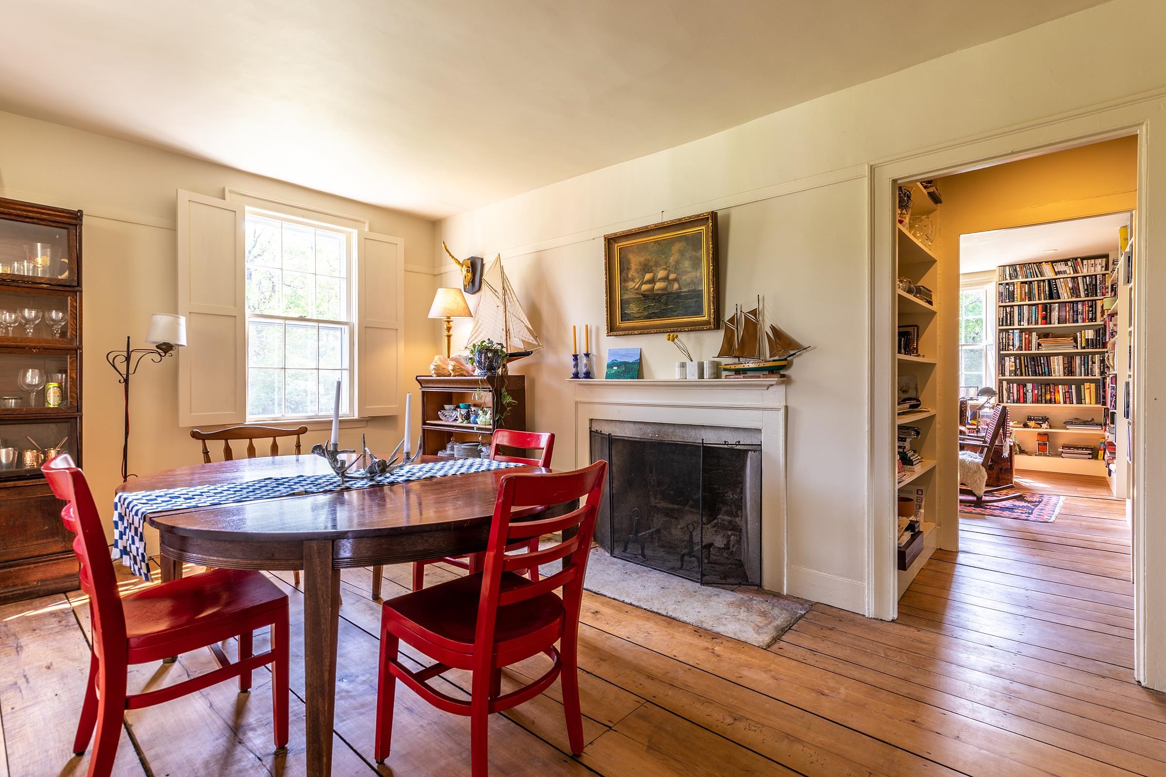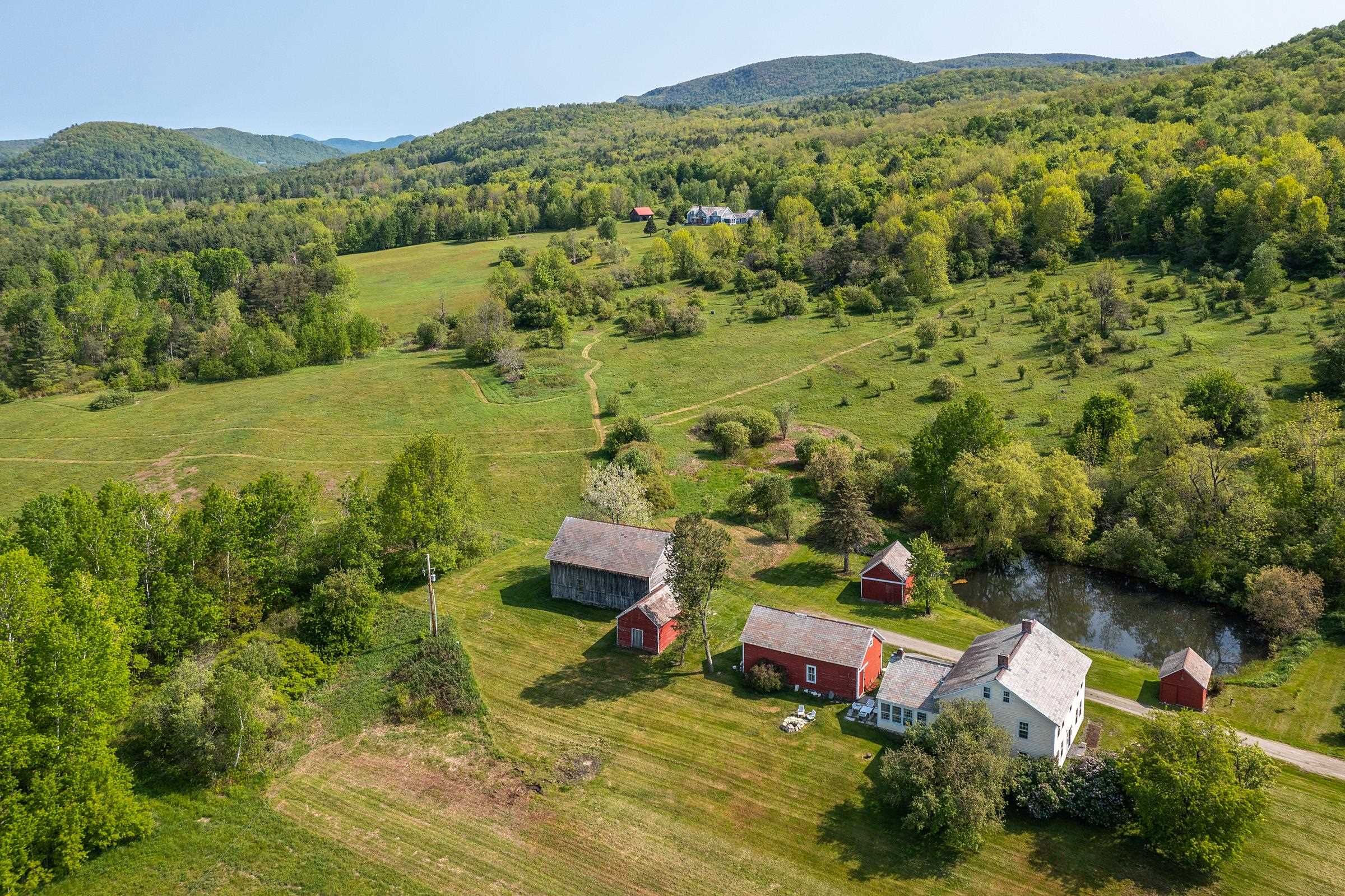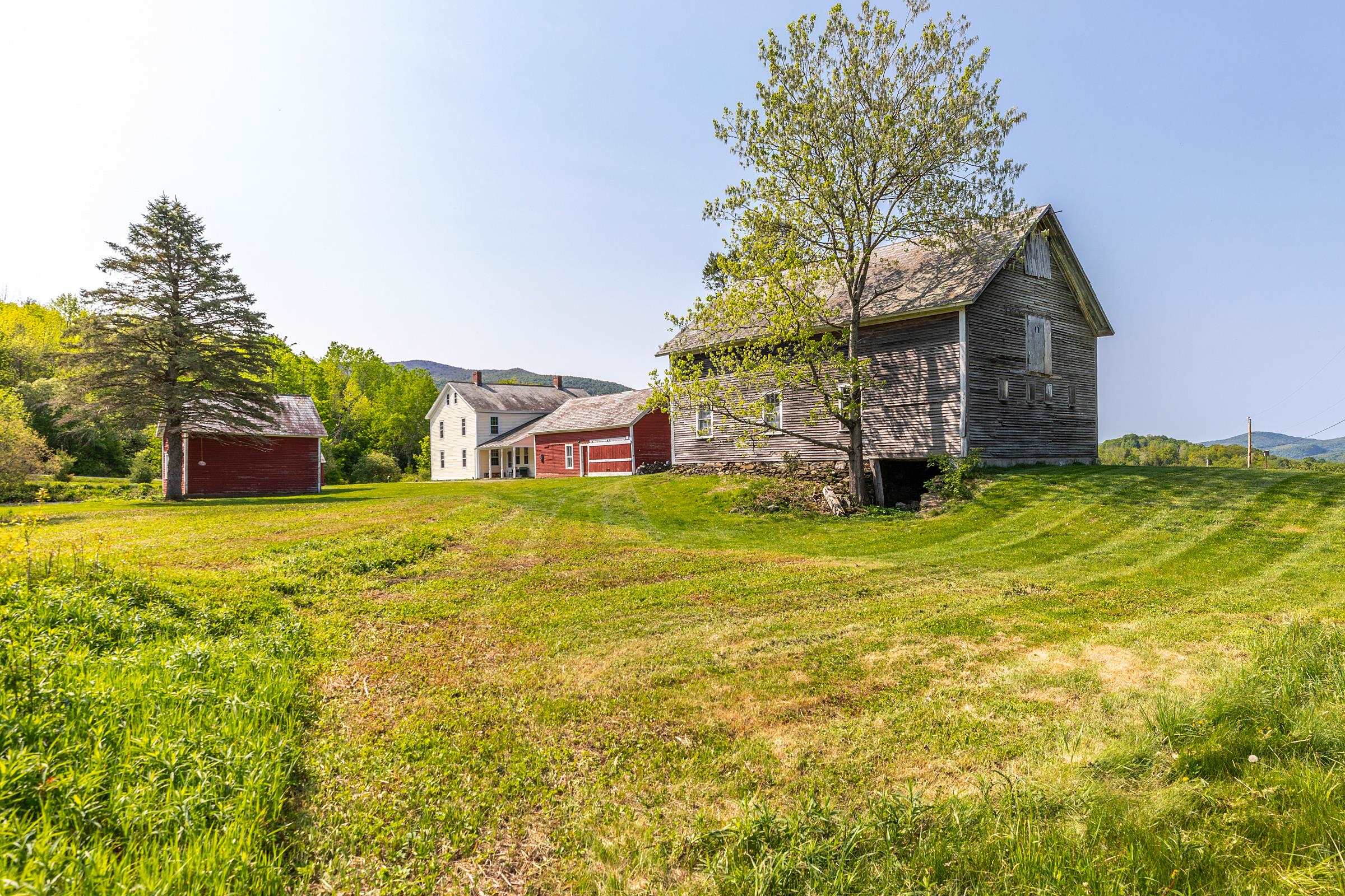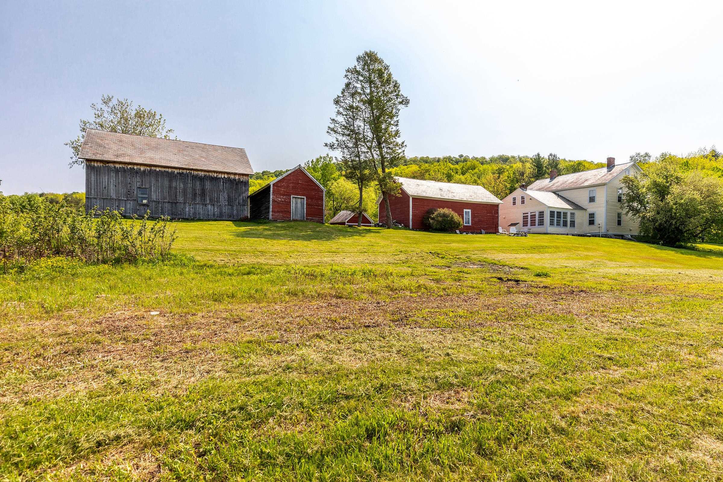Pawlet Perfection! High on a quiet country road, surrounded by open meadows, is that rare combination of peaceful country retreat and grand historic home. This enchanting compound sits on 32 +- acres with protected majestic mountain views and includes a classic 1817 Federal farmhouse, a dramatic two story barn, original blacksmith shop, milk house, open tractor shed, and other functional outbuildings (ripe for cottage conversion). Sensitively restored and updated for modern living, the residence offers crisp spacious rooms with high ceilings and beautiful historic details like original wrought iron hardware and wide plank flooring. The gracious floor plan includes a wide center stair hall surrounded by an elegant living room, a library with floor-to-ceiling built-in bookshelves on every wall, with a passthrough into the formal dining room, and first floor bedroom/study with an adjacent full bath. All of these rooms boast expansive closets and wood-burning fireplaces with original marble hearths. A mid 19th century addition houses the modern kitchen with new Italian appliances, multiple pantries, and a large breakfast area wrapped in a wall of windows facing the exquisite westerly sunset vistas. Upstairs, four large BRs with two window exposures and generous closets plus a bath w/ walk-in shower round out this comfortable home. The attic is finished providing functional art/work space and storage. High-speed fiber and updated mechanicals, including radiant heat throughout the entire first floor. A Peaceful Four Season Paradise minutes to Pawlet Village, nearby Dorset & Manchester amenities, plus hiking, skiing, rail trail, equestrian pursuits, lake and river recreation, farmers markets, music, art & theater! The parcel has a second building area with a state waste water permit for a 5 bedroom home with buried electric and junction box on site to create a fantastic family, friends or corporate compound!