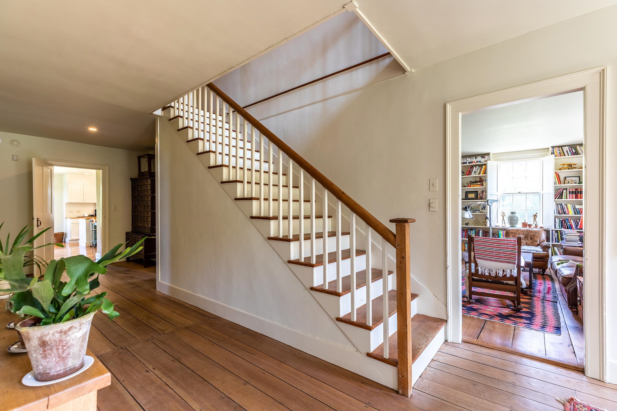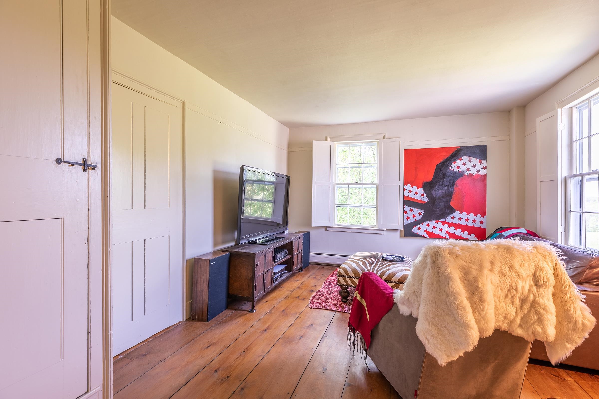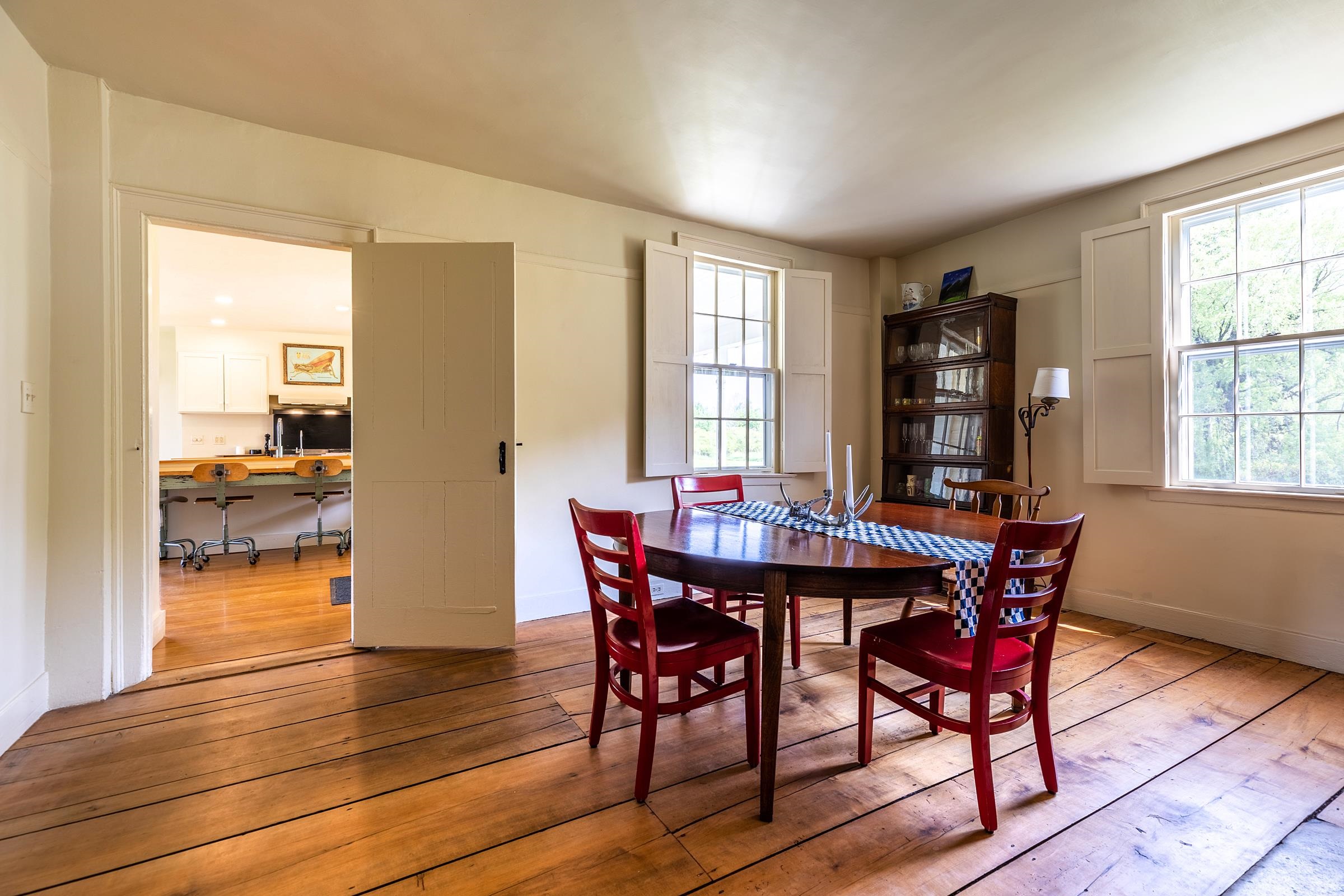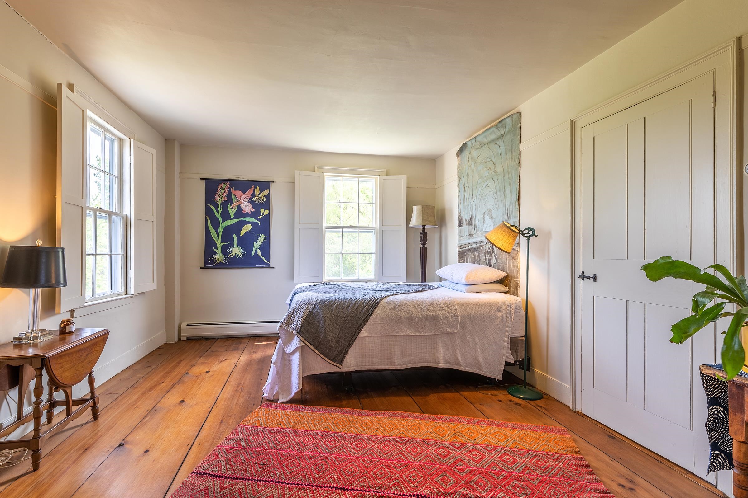 Pawlet Perfection! High on a quiet country road, surrounded by open meadows, is that rare combination of peaceful country retreat and grand historic home. This enchanting compound sits on 32 +- acres with protected majestic mountain views and includes a classic 1817 Federal farmhouse, a dramatic two story barn, original blacksmith shop, milk house, open tractor shed, and other functional outbuildings (ripe for cottage conversion). Sensitively restored and updated for modern living, the residence offers crisp spacious rooms with high ceilings and beautiful historic details like original wrought iron hardware and wide plank flooring. The gracious floor plan includes a wide center stair hall surrounded by an elegant living room, a library with floor-to-ceiling built-in bookshelves on every wall, with a passthrough into the formal dining room, and first floor bedroom/study with an adjacent full bath. All of these rooms boast expansive closets and wood-burning fireplaces with original marble hearths. A mid 19th century addition houses the modern kitchen with new Italian appliances, multiple pantries, and a large breakfast area wrapped in a wall of windows facing the exquisite westerly sunset vistas. Upstairs, four large BRs with two window exposures and generous closets plus a bath w/ walk-in shower round out this comfortable home. The attic is finished providing functional art/work space and storage. High-speed fiber and updated mechanicals, including radiant heat throughout the entire first floor. A Peaceful Four Season Paradise minutes to Pawlet Village, nearby Dorset & Manchester amenities, plus hiking, skiing, rail trail, equestrian pursuits, lake and river recreation, farmers markets, music, art & theater! The parcel has a second building area with a state waste water permit for a 5 bedroom home with buried electric and junction box on site to create a fantastic family, friends or corporate compound!