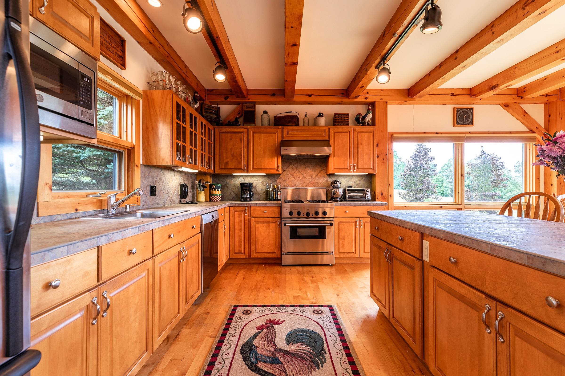 - Cathedral Ceiling, Dining Area, 2 Fireplaces, Kitchen Island, Kitchen/Dining, Kitchen/Living, Living/Dining, Natural Light, Natural Woodwork, Security, Soaking Tub, Vaulted Ceiling, Walk-in Closet, 1st Floor Laundry