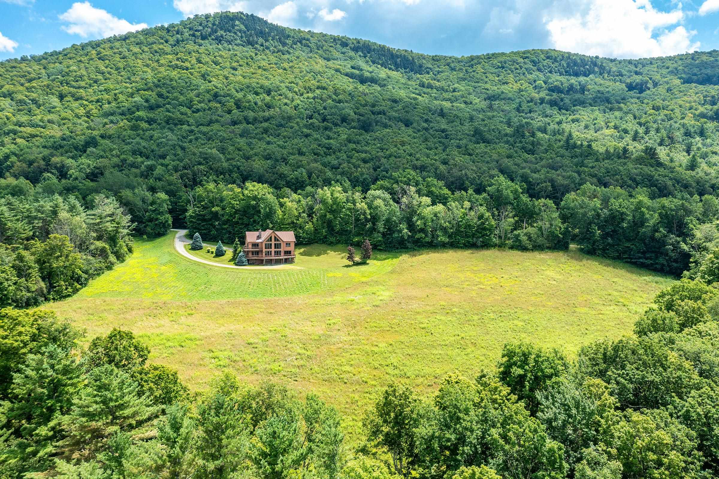 Quintessential Vermont Get Away: 62.8 Acres of exceptionally balanced pasture, hardwoods and Flower Brook! Circa.2001, 3000 SF beautifully executed Post and Beam residence is perched in an upper meadow featuring STUNNING THREE SISTERS VIEWS! Thoughtfully designed, the Great Room encompasses the open island kitchen, dining and dramatic two plus story glass wall living room all soaking up the phenominal sunset field to woodland mountain views. A massive stone fireplace is perfectly located for all living spaces to enjoy... The main level also offers a study and most practical mudroom/laundry. The second level opens to a loft landing and directs guests one direction to two bedrooms and bath, while the primary suite speaks to an equally dramatic vaulted post and beam frame, fireplace and walk-in closet and spacious bath with double vanity, separate shower and tub. On the lower level there's a walk out family room or exercise area, oversized two bay finished, heated garage and utility space. Furnishings available. Wildlife observation fascinates while weather and the big sky overlook is magnetic. This residence proves to be perfectly sited bordering Pawlet and intended to speak to peaceful enjoyment at every moment. Hardwood flooring, incredible light, and a whole house generator rounds out the package. Property in Land Use This P&B lives beautifully and truly represents the Quintessential Vermont Calling Card!